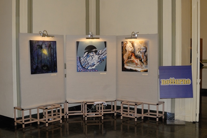 Sala hall come un’ala di un museo, dove il visitatore si trova di fronte a tre diversi momenti di grande peso artistico. 'Domino di Noè' di Paolo Anselmo 'Lune' e 'Notturni' del gruppo kapra, momenti artistici creati in collaborazione con il circolo Amici di Albisola e con la Fondazione 100 fiori di Savona.