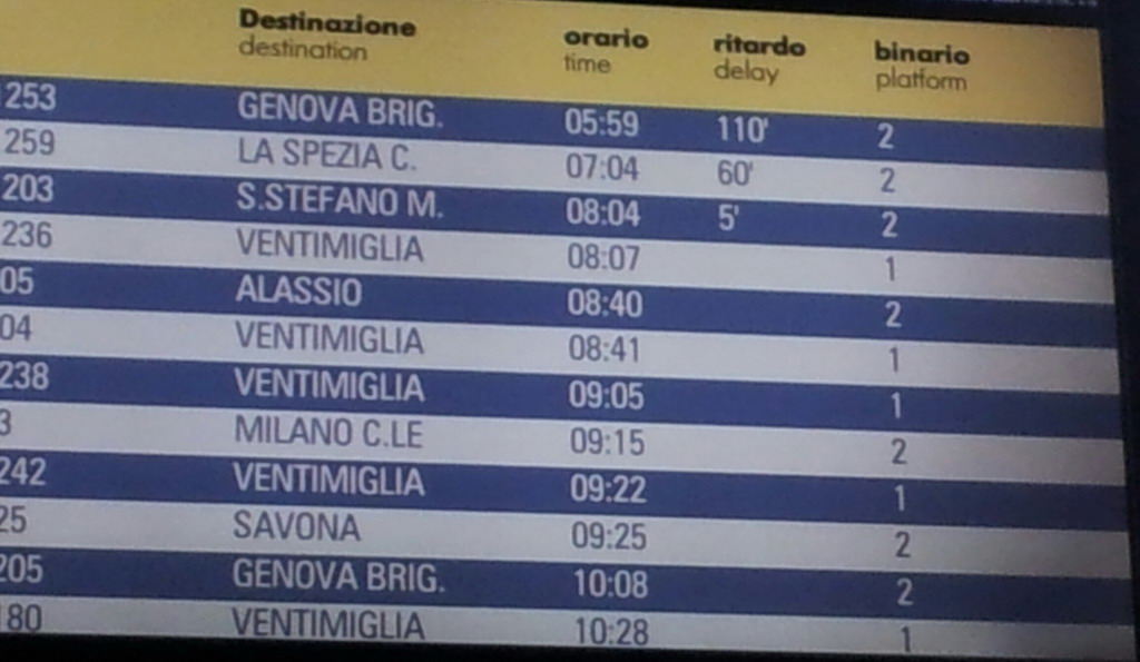 Ritardi che, per quanto riguarda un convoglio diretto nel capoluogo ligure, hanno anche sfiorato le due ore.
