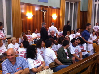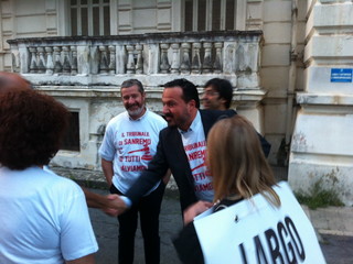 Lo stesso sindaco Maurizio Zoccarato è arrivato a bordo del suo scooter mostrando sotto alla giacca una delle magliette stampate dagli avvocati per manifestare contro la scomparsa del palazzo di giustizia matuziano che di fatto a settembre dovrebbe essere accorpato con quello di Imperia.