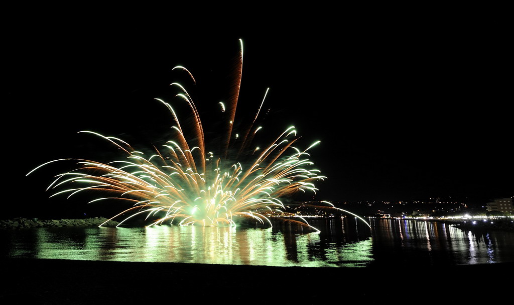 Lo spettacolo pirotecnico proposto dalla prestigiosa azienda Benassi di Castel d'Aiano (BO), che dal 1865 produce esibizioni di fuochi artificiali di ogni genere (FOTO) ha dato il via ieri sera al M&T Festival 2013 di San Bartolomeo al Mare, il ventesimo della serie, un festival di tutte le arti, un contenitore di spettacoli, proposte culturali e momenti di confronto, con una offerta che spazia fra musica, arte, teatro, canzone d’autore e danza. Come sempre, i fuochi d'artificio hanno riscosso grande successo di pubblico.