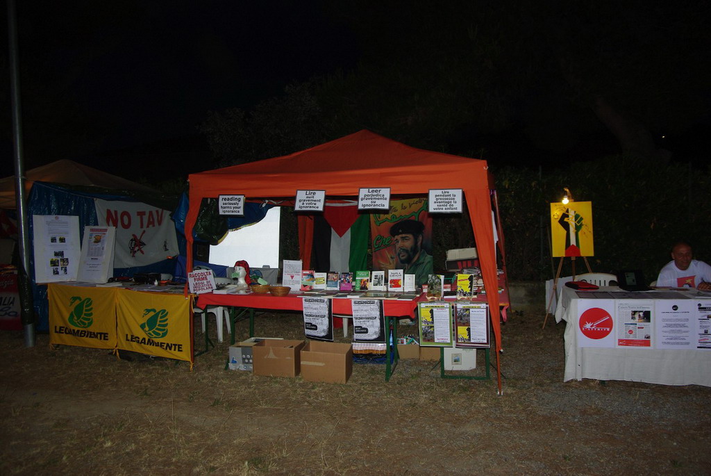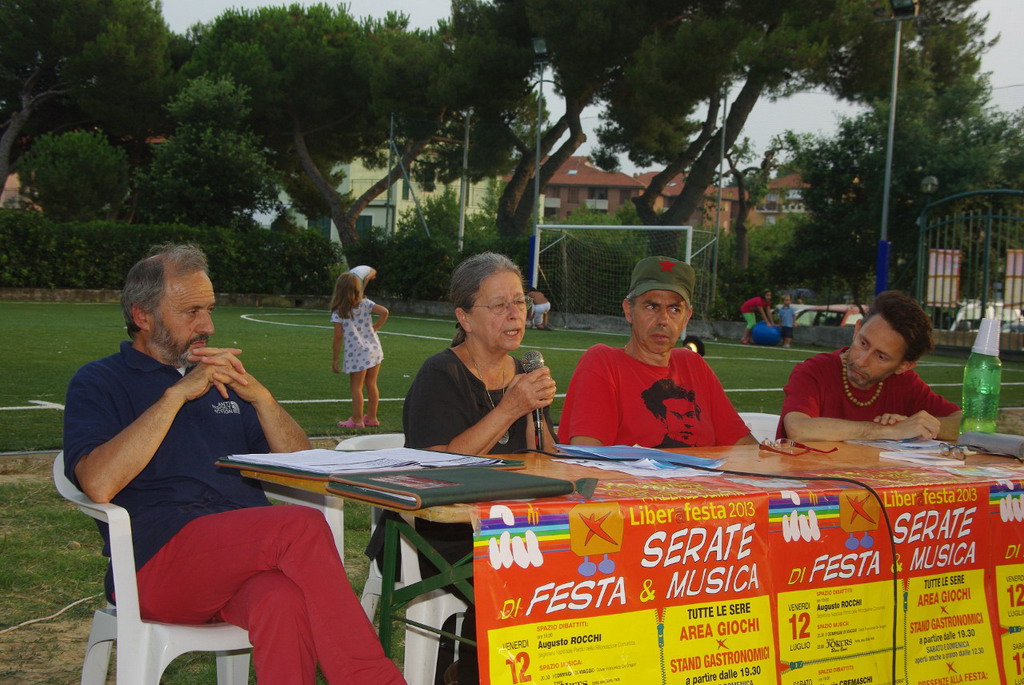 Presso l’area dibattiti si sono alternati alcuni ospiti tra cui Augusto Rocchi della Segretria nazionale del PRC sul tema crisi economica-disoccupazione, Giorgio Cremaschi sul rilancio di una Sinistra anticapitalista, alternativa alle grandi intese neocentriste, davvero in difesa dei lavoratori e di chi si sta impoverendo sempre di più in seguito alle politiche di austerità prima di Monti e ora di Letta-Berlusconi. - ricordano - Ieri è stata con noi Haidi Giuliani, madre di Carlo, morto durante il G8 di Genova 2001, che, intervistata dal giornalista Pierantonio Ghiglione, ha parlato dei risultati dell’osservatorio sulla repressione e della legge di iniziativa popolare contro il reato di tortura nelle carceri italiane. Tutti e tre i giorni è stato con noi lo scrittore Gino Marchitelli che, oltre a darci un prezioso aiuto pratico, ha presentato il suo secondo noir Quimera”.