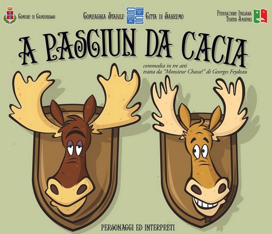 Debutterà domani a Camporosso la nuova commedia della Compagnia Stabile Città di Sanremo ‘A pasciun da cacia’, opera in tre atti tratta da ‘Monsieur chasse!’ di Georges Feydeau, per un adattamento e regia di Anna Blangetti. Inizio spettacolo ore 21, ingresso libero.