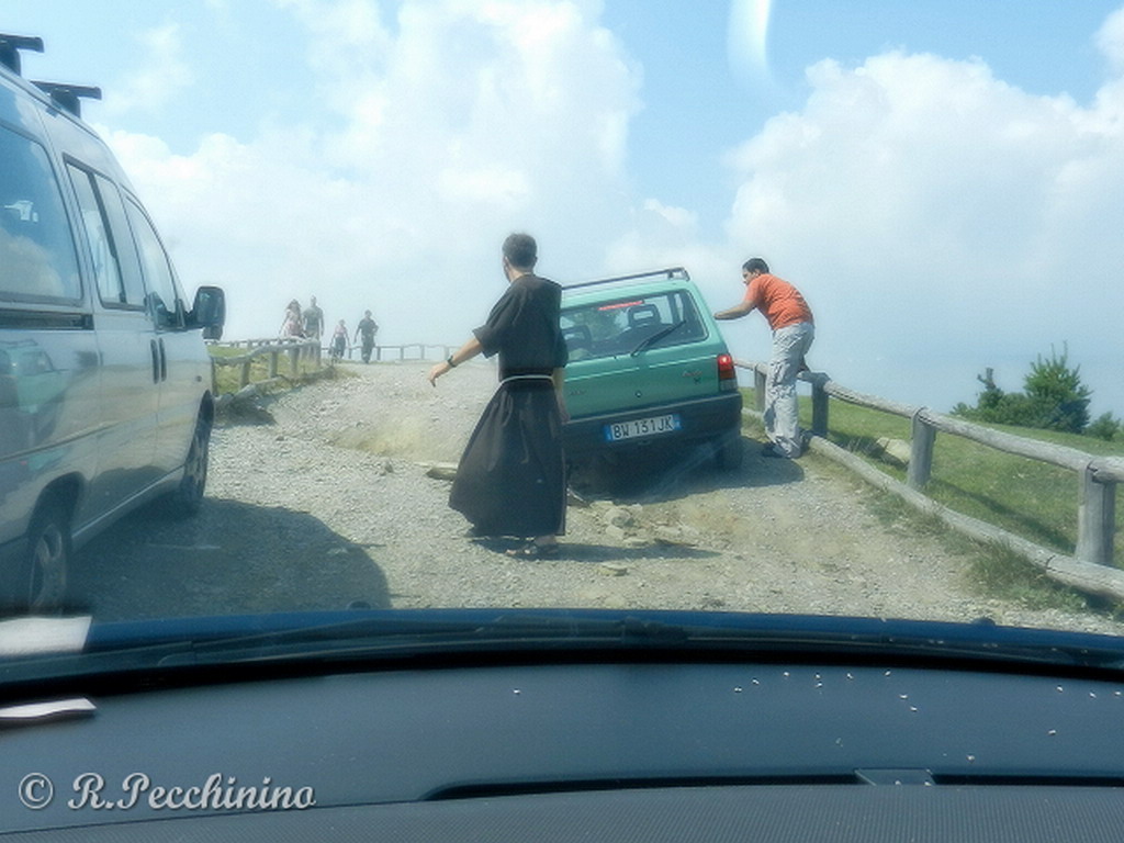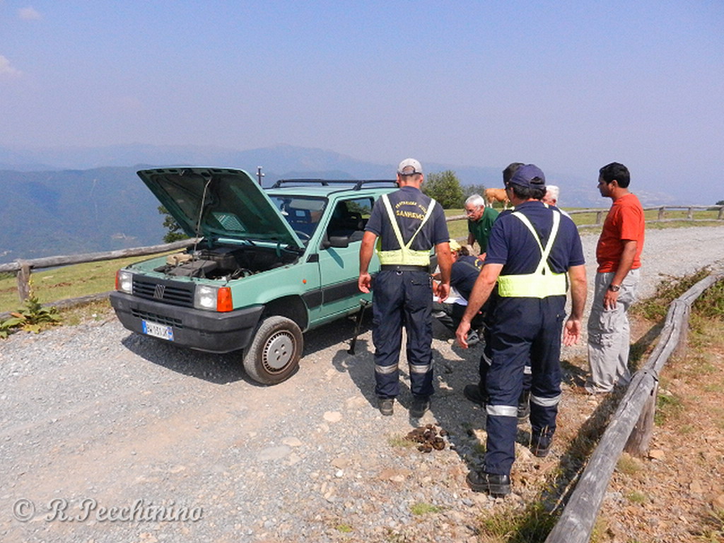 Soccorsi immediati dai volontari AIB San Bartolomeo, all'auto che trasportava Padre Walter dei frati Cappuccini di Sanremo, che doveva celebrare domenica 21 luglio alle ore 16,00, la Santa Messa nella chiesetta di Monte Bignone.