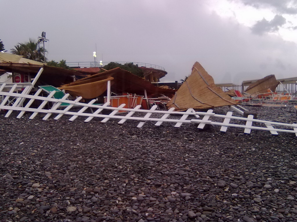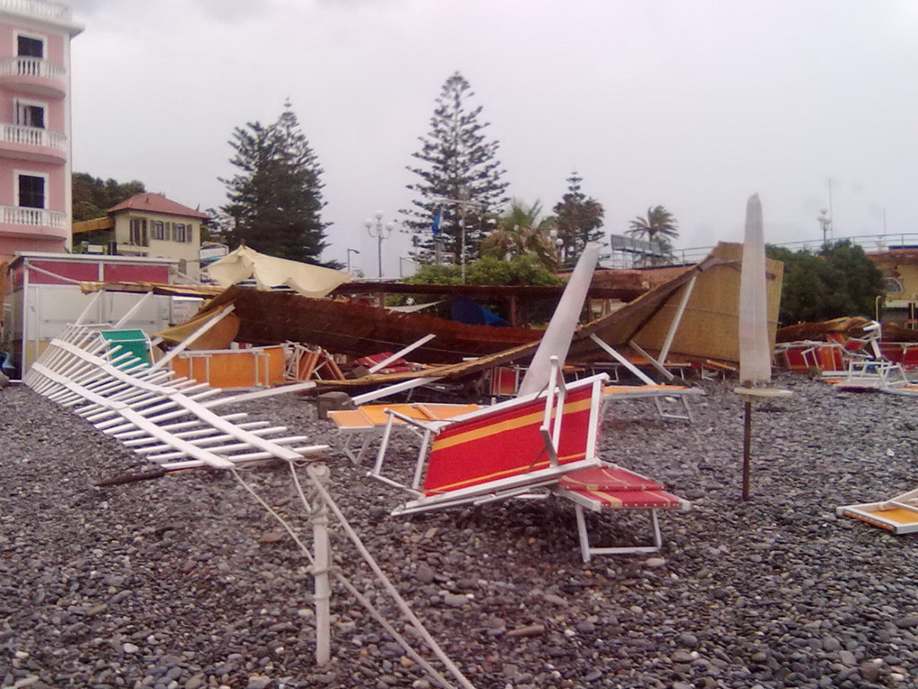 Il maltempo di questa mattina si è abbattuto anche su Bordighera. Il vento forte e la pioggia battente non hanno risparmiato le spiagge del litorale bordigotto.
