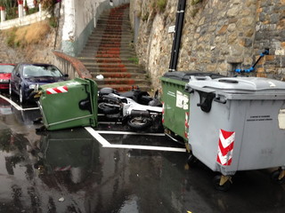"Buonasera, sono un vostro lettore malcapitato questa mattina alla tromba d'aria. Ero sulla seconda auto, una Panda bianca, quando tutti i bidoni dei rifiuti si sono scagliati con violenza verso di noi e tutte le auto e moto in sosta. Abbiamo sgomberato la strada, riponendo i cassonetti ai lati per ripristinare la circolazione e abbiamo notato che sette cassonetti erano tutti privi della sicura. La domanda da pubblicare e la seguente: chi pagherà i danni subiti? Il comune per calamità naturali o lo stesso si avvarrà dal servizio dei nettezza urbana che non ha ottemperato al blocco in sicurezza dei cassonetti?"