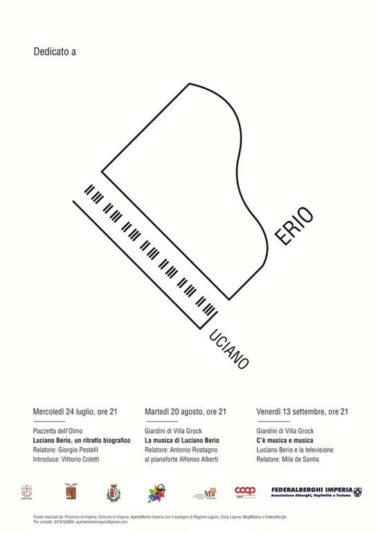 Martedì 20 agosto, alle ore 21.00, a Imperia nei Giardini di Villa Grock, a pochi passi dalla casa dell’artista, prosegue la rassegna 'Dedicato a Luciano Berio' organizzata dall’Associazione Culturale ApertaMente in collaborazione con la Provincia e il Comune nel decennale della scomparsa del compositore imperiese che è da molti ritenuto il più grande del secondo Novecento.
