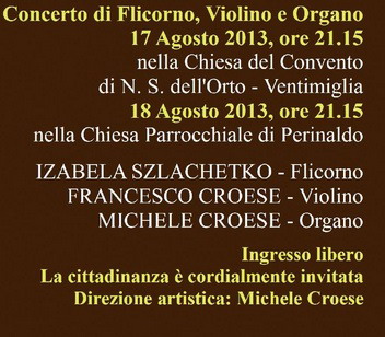 Ultimi appuntamenti per la 9a edizione del Festival Organistico Agati in Concerto che prevedeva quest'anno 4 concerti d'organo: penultimo stasera a Ventimiglia nella chiesa del Convento di N.S. dell'Orto e ultimo appuntamento a Perinaldo domani 18 agosto alle ore 21.15 nella chiesa parrocchiale di San Nicolò.
