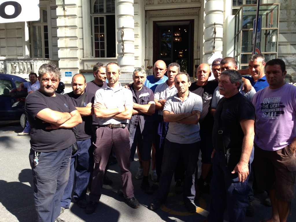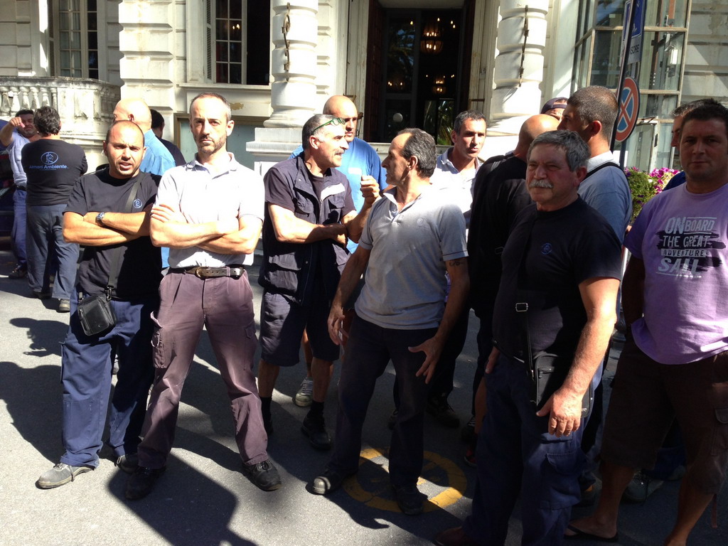 Nuova protesta stamani davanti al comune di Sanremo da parte dei lavoratori per la ditta AIMERI, che gestisce il servizio di pulizia delle strade e raccolta rifiuti nella città dei fiori. Al centro della manifestazione di stamani il mancato ricevimento dello stipendio che, stanchi di dover attendere il denaro che sarebbe dovuto arrivare il 15 agosto, sono scesi in strada andando davanti al municipio della città dei fiori.