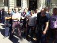 Qualche incomprensione stamani tra i manifestanti e l'assessore all'ambiente Antonio Fera, che a fronte di qualche risposta poco garbata, dopo breve ha preferito ritornare nel proprio ufficio in attesa che gli animi dei lavoratori si calmassero.