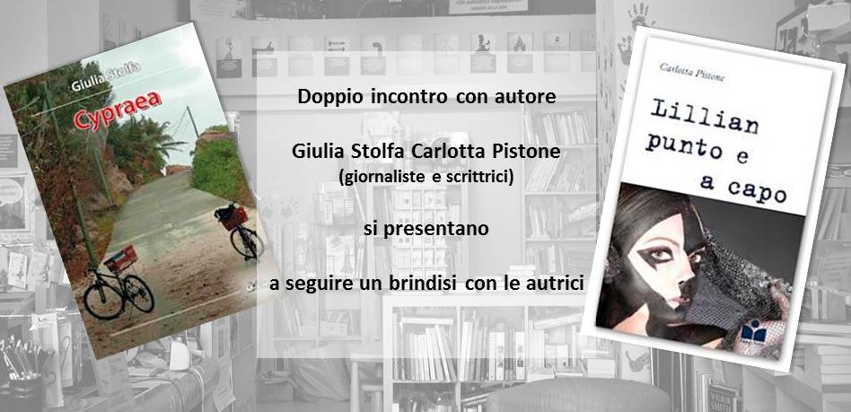 Carlotta Pistone presenta il libro 'Lilian punto e a capo' mentre Giulia Stolfa proporrà 'Cypraea'. A seguire l'aperitivo con le autrici.