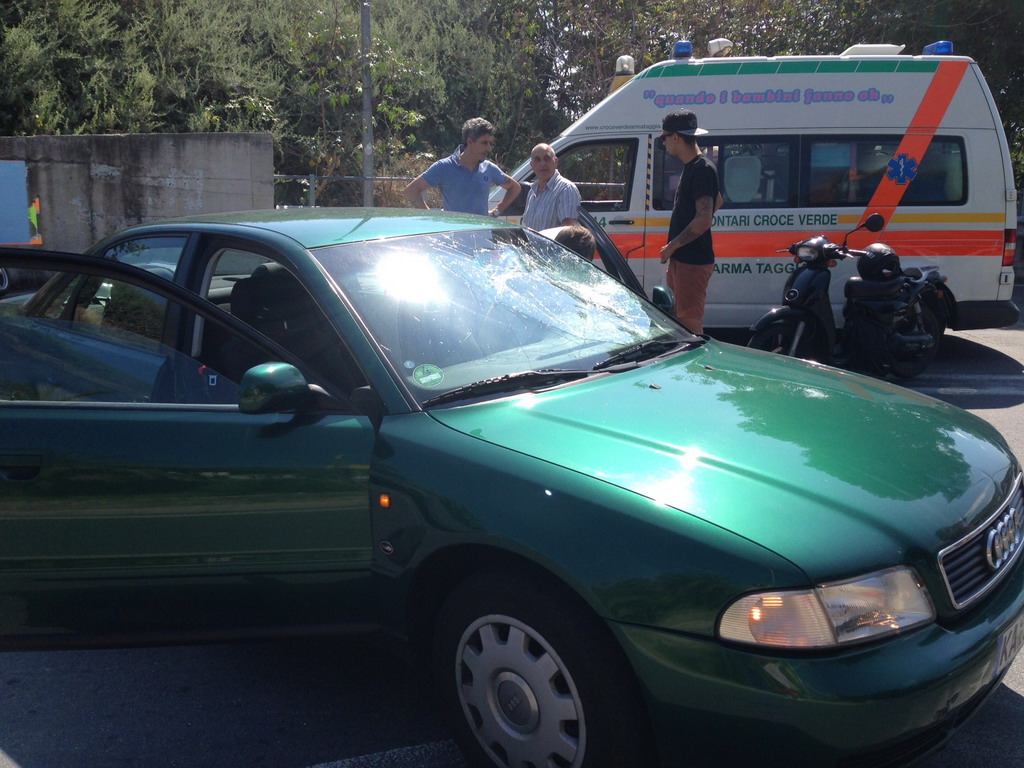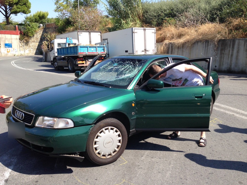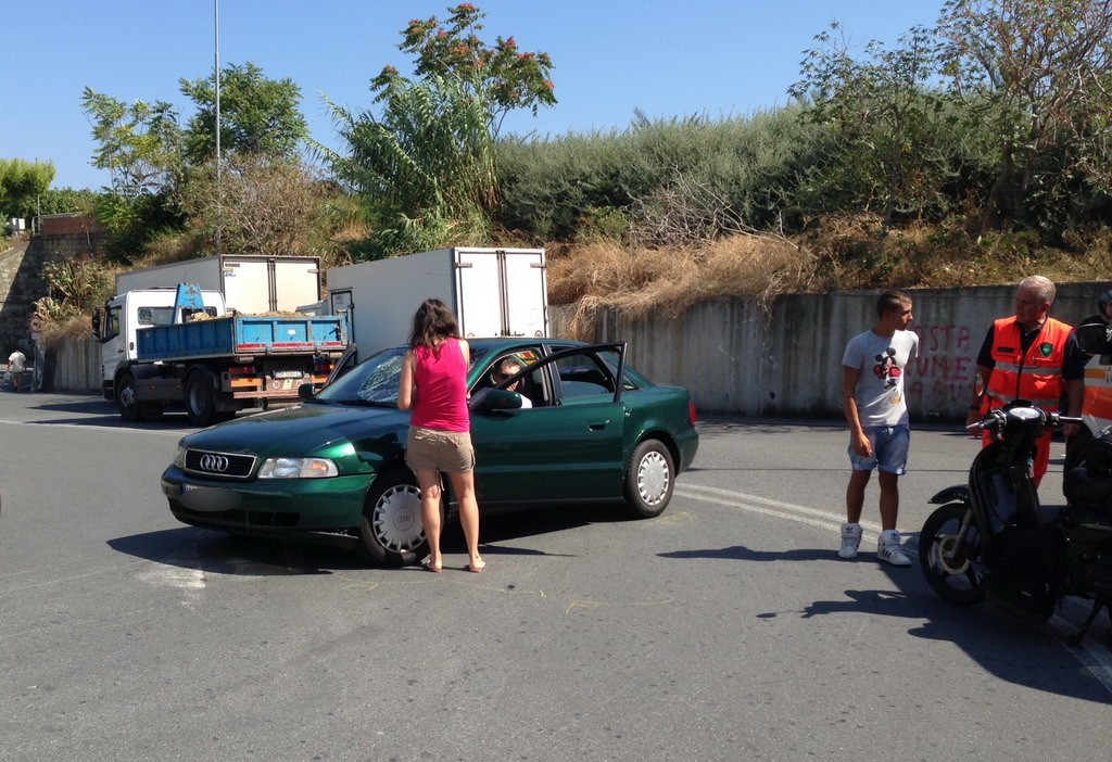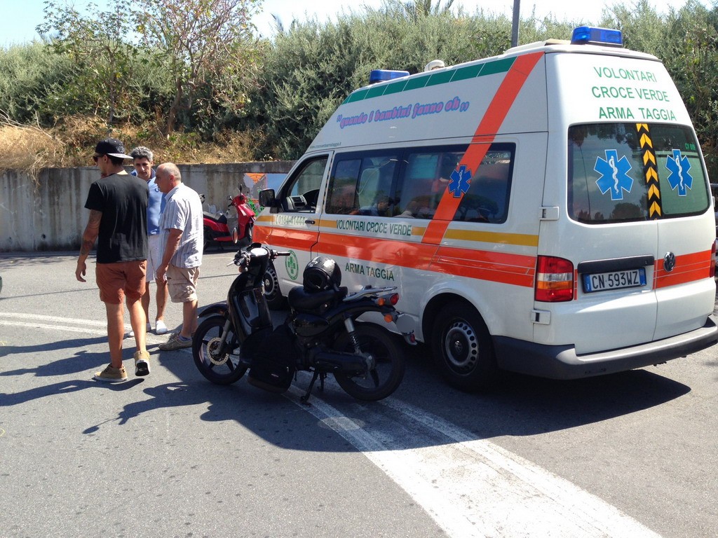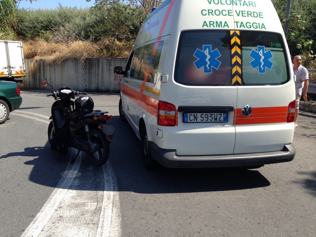 Scontro tra uno scooter ed un'auto, questo pomeriggio poco prima delle 14 sulla traversa a ridosso dell'Aurelia, a Bussana di Sanremo, di fronte al supermercato Carrefour.