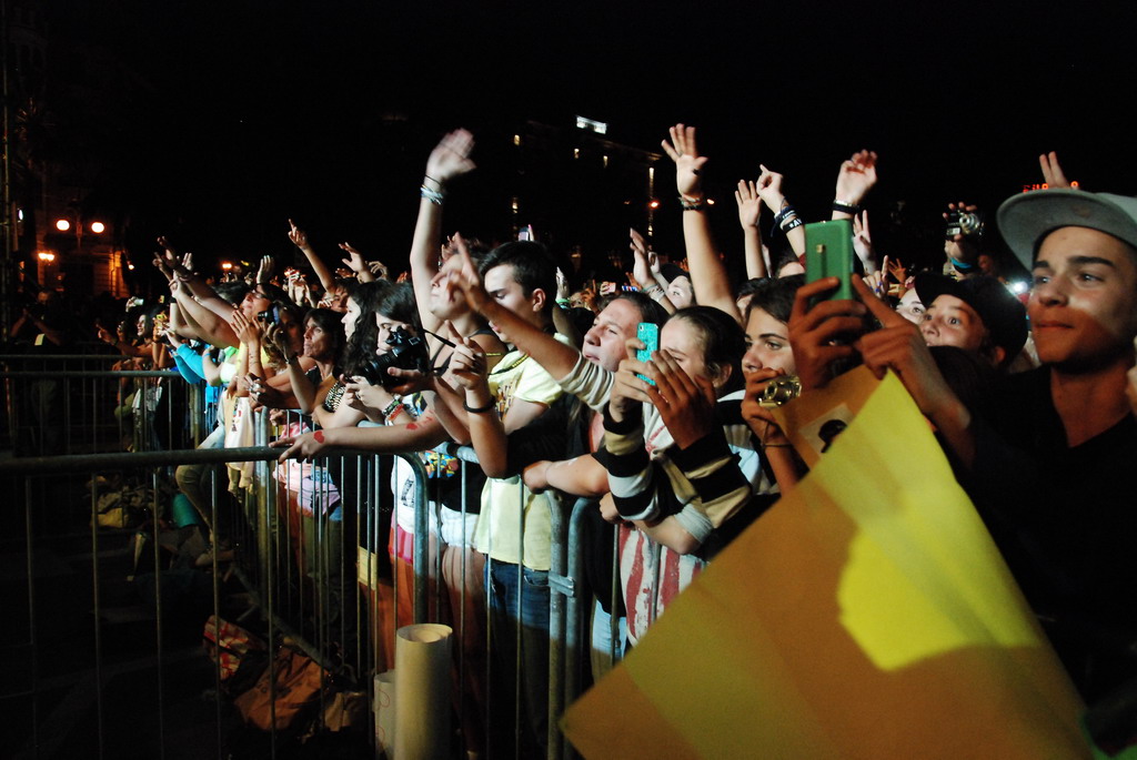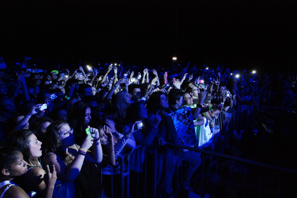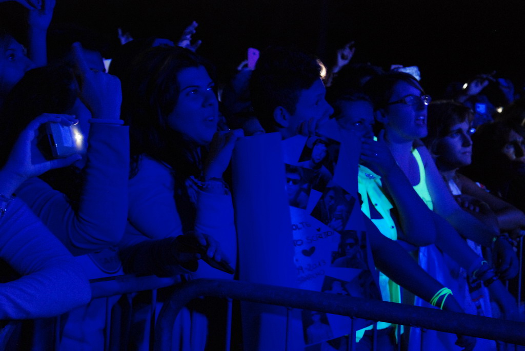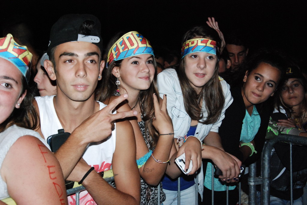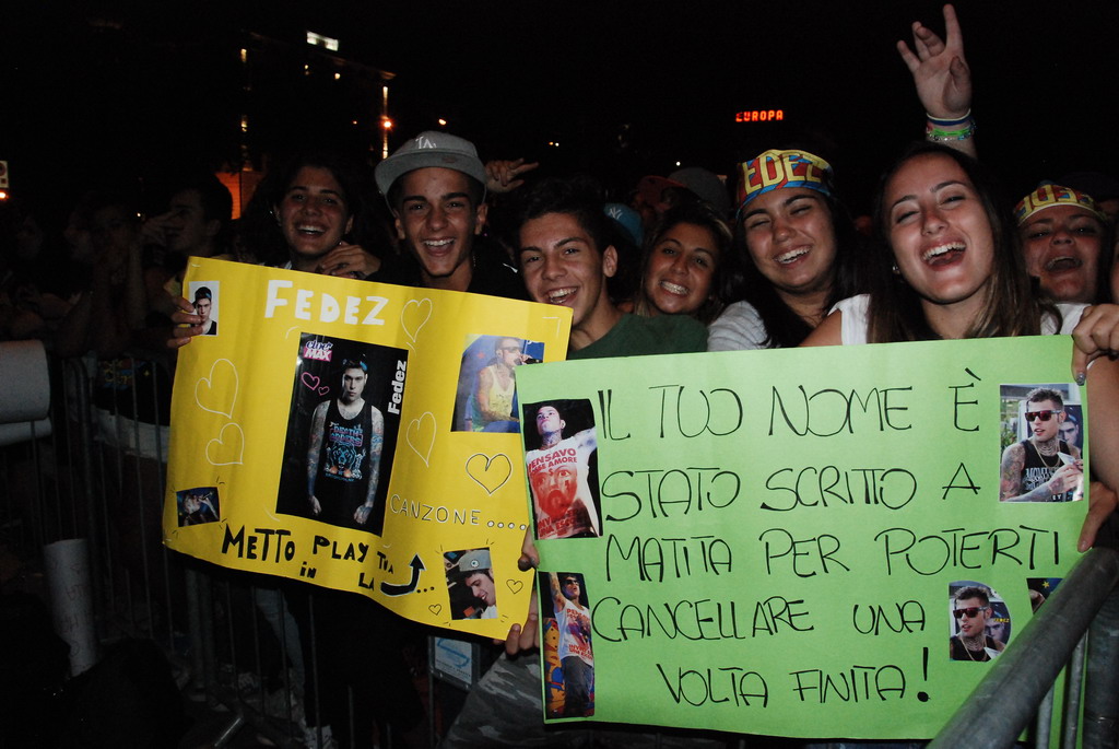 I fan di Fedez hanno cantato a squarciagola per quasi due ore i maggiori successi del proprio beniamino. A metà concerto qualche attimo di tensione tra la band ed uno sparuto gruppetto che ha alzato uno striscione con su scritto 'Fedez, il cancro del rap'.