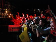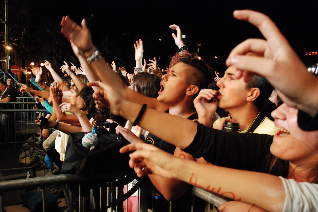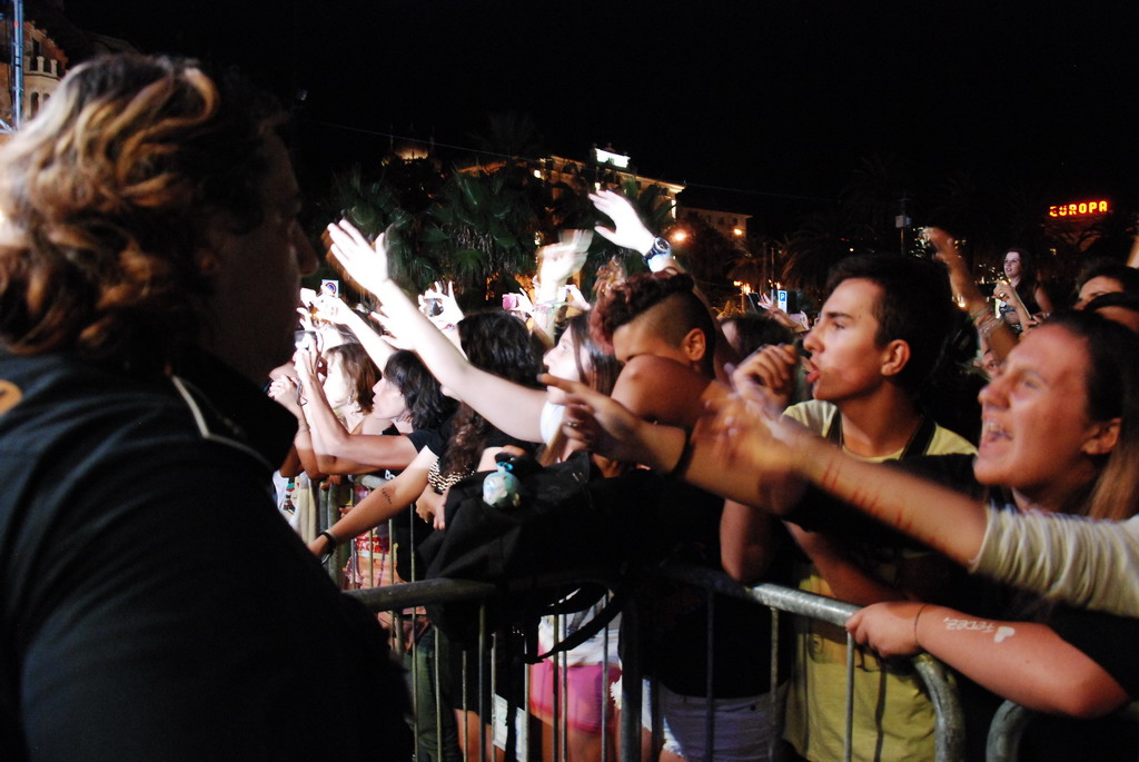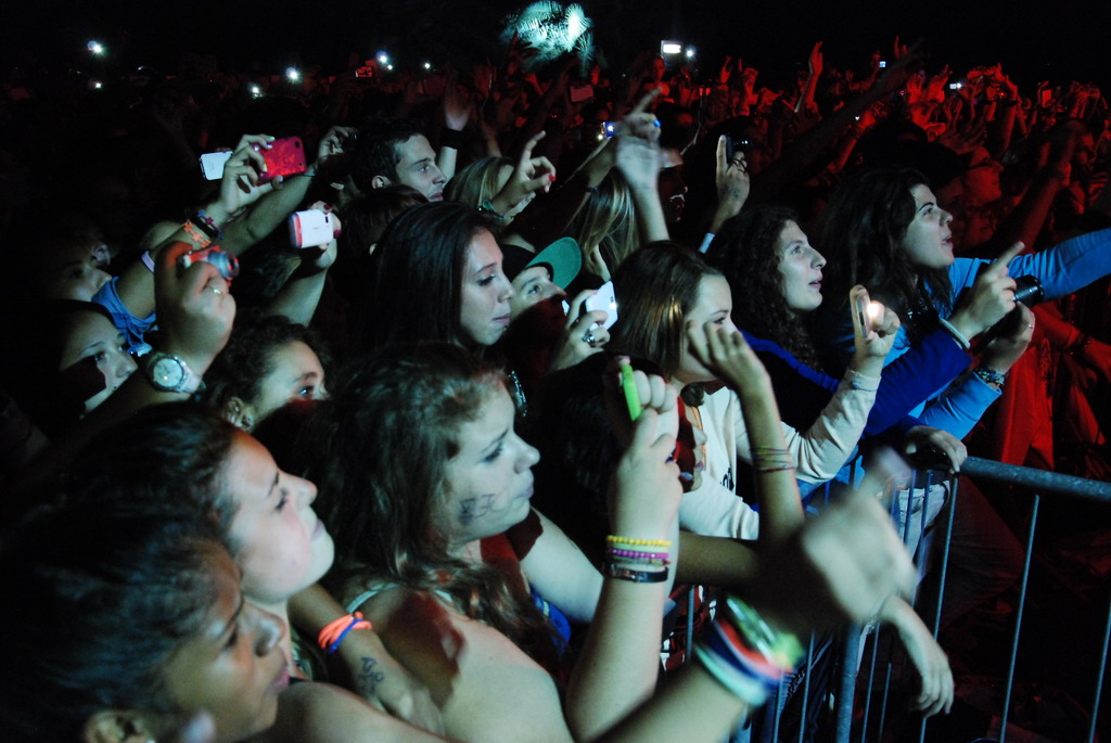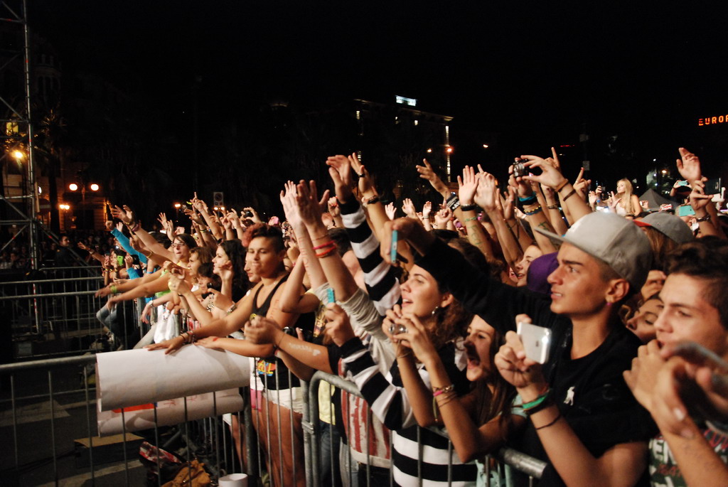I fan di Fedez hanno cantato a squarciagola per quasi due ore i maggiori successi del proprio beniamino. A metà concerto qualche attimo di tensione tra la band ed uno sparuto gruppetto che ha alzato uno striscione con su scritto 'Fedez, il cancro del rap'.