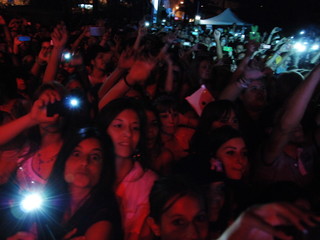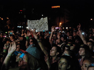 I fan di Fedez hanno cantato a squarciagola per quasi due ore i maggiori successi del proprio beniamino. A metà concerto qualche attimo di tensione tra la band ed uno sparuto gruppetto che ha alzato uno striscione con su scritto 'Fedez, il cancro del rap'.