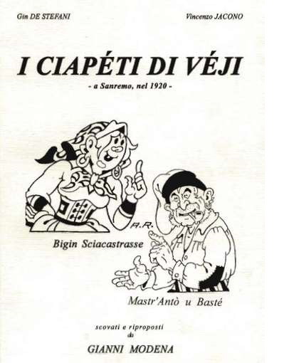 Domani pomeriggio alle ore 16,30 nel Museo di Villa Luca di Coldirodi avrà luogo un nuovo appuntamento in occasione delle Giornate Europee del Patrimonio 2013: la presentazione del libro curato da Gianni Modena: ‘I ciapeti di veji’ che raccoglie le invettive popolari di Bigin Sciacastrasse e Mastr’Antò u Bastè, i due personaggi ideati da due grandi figure del dialetto sanremasco, i poeti e commediografi Gin de Stefani e Vincenzo Jacono, pubblicate su L’Eco della Riviera negli anni ’20.