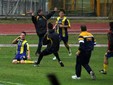 30° primo tempo Inizia una forte pioggia che costringe gli organizzatori ad accendere le luci dello stadio. Il gioco diventa più burrascoso per le due formazioni. E’ la cairese a premere di più senza però risultati.