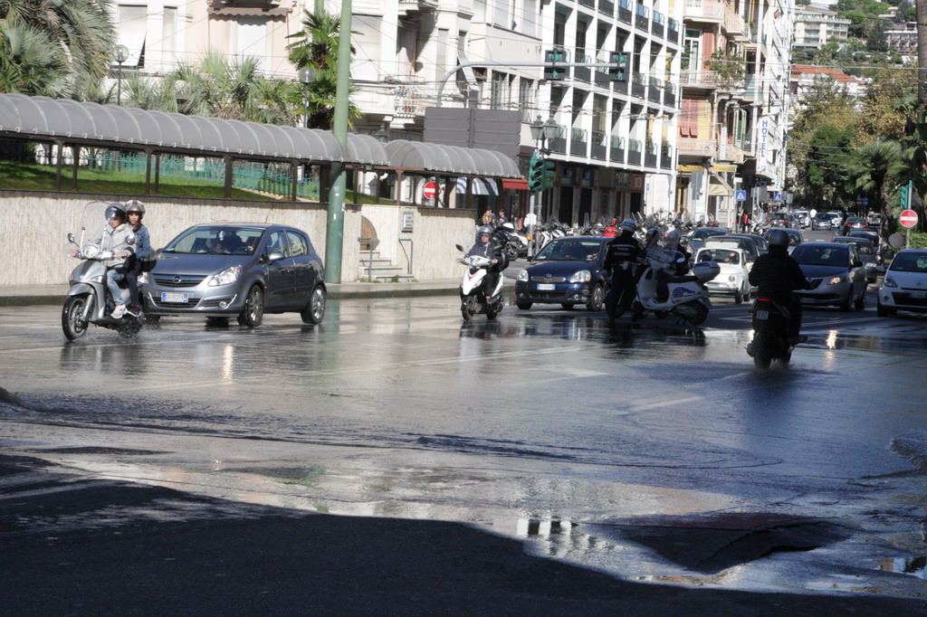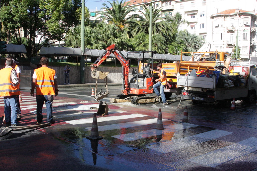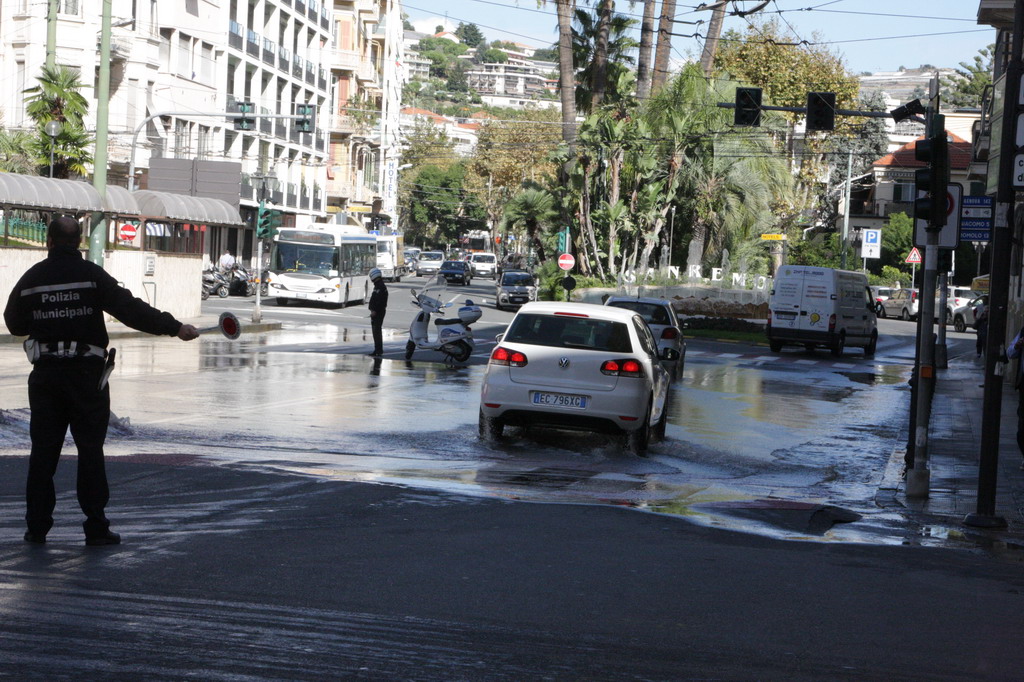Sanremo: esplode un tubo dell'acqua in via Roma, i lavori andranno avanti fino alle 23, domani l'asfalto
