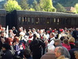 Grande partecipazione per l'evento 'Vapore a Tenda', con il treno storico partito alle 8.30 dalla stazione di Ventimiglia per destinazione Tenda. La Locomotiva a vapore 740 244, con le carrozze in livrea castano isabella è partita per la Val Roya, ripercorrendo quel percorso voluto da Giuseppe Biancheri ormai oltre un secolo fa.
