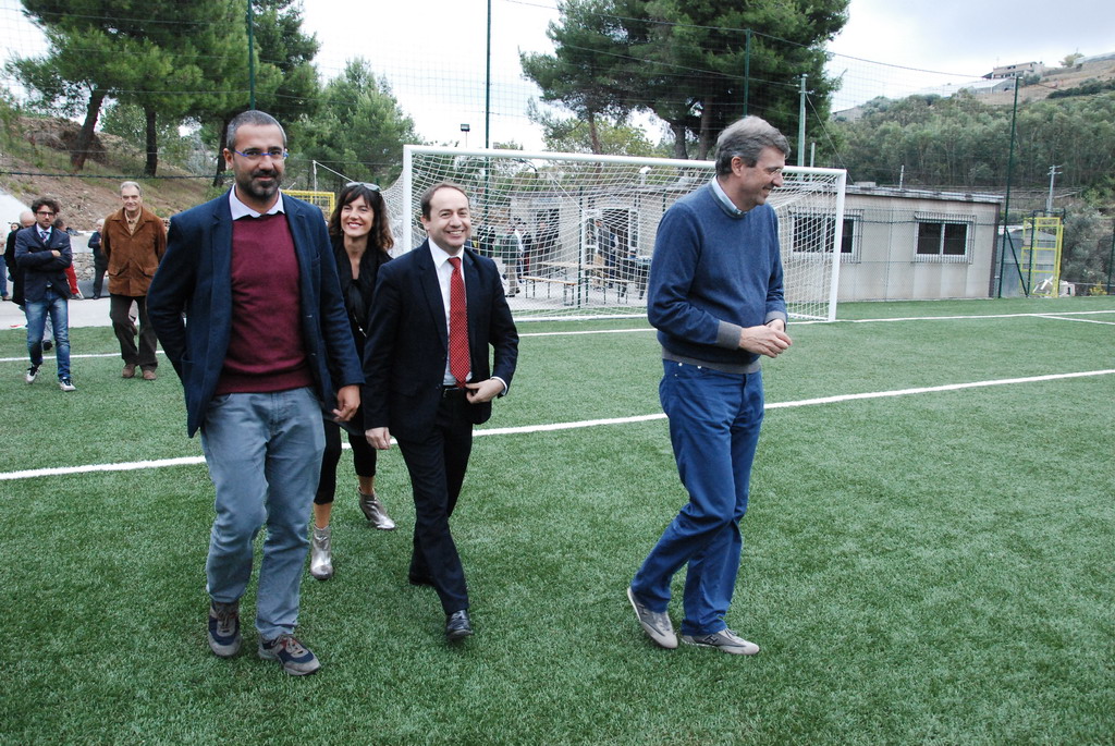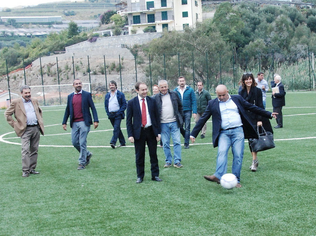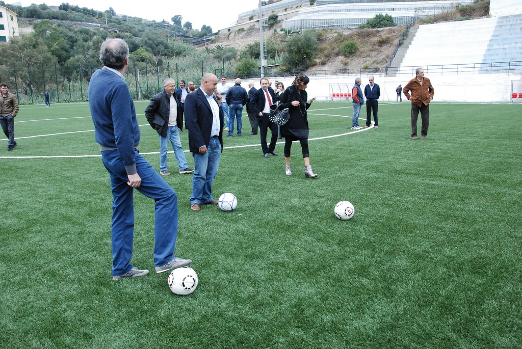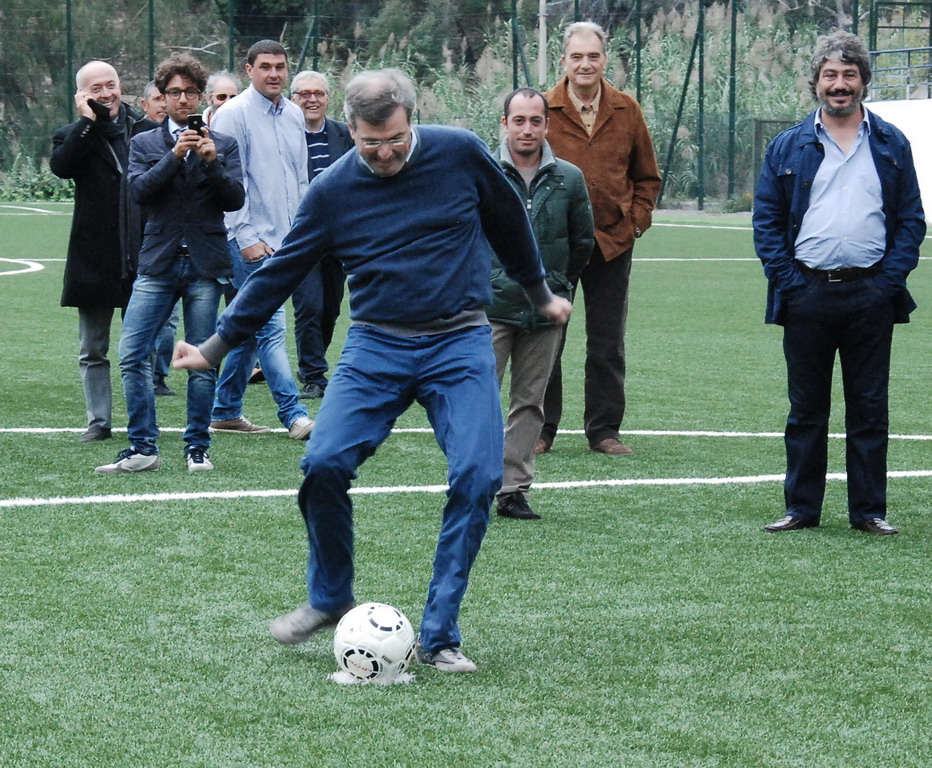 Dopo la benedizione di Mons. Toffani si è subito scatenata la voglia di pallone di tutti quanti e, appena ne sono comparsi tre in campo si è subito scatenata una sorta di gara ai rigori, che ha visto protagonisti il Presidente Burlando, l'Assessore Cascino ed il Sindaco Pallini, che hanno anche dimostrato una discreta 'tecnica'. Ha provato a calciare anche l'Assessore Paita. La gestione del campo è affidata alla Società U.S. Santo Stefano Calcio 1983 che milita nel Campionato di Seconda Categoria e che sta portando avanti un progetto pilota per la gestione unificata del settore giovanile Riva-Santo Stefano.