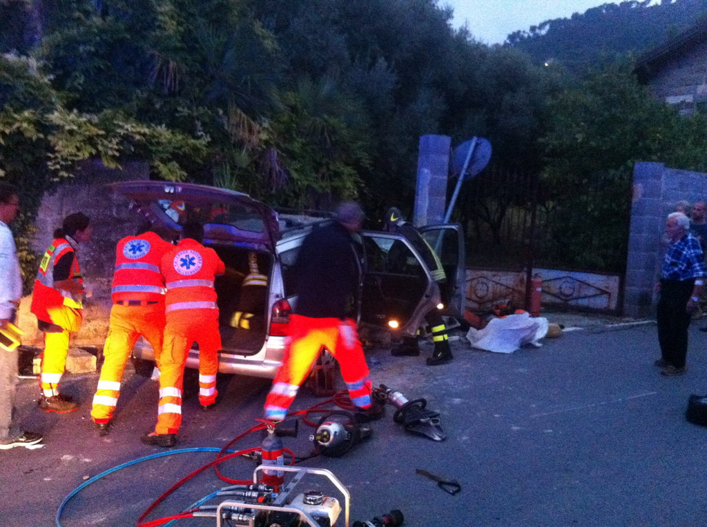 Auto sfonda il muro di un’abitazione a Camporosso, conducente rimane incastrato tra le lamiere: è salvo