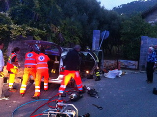 Auto sfonda il muro di un’abitazione a Camporosso, conducente rimane incastrato tra le lamiere: è salvo