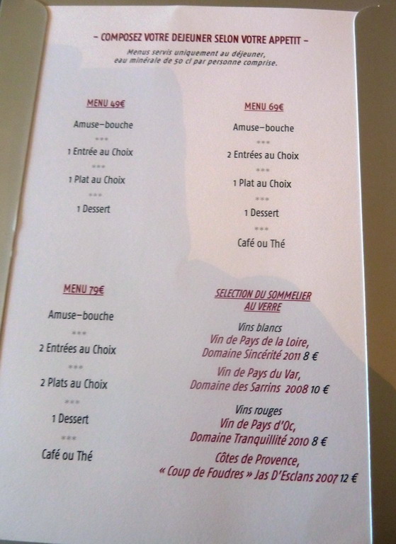 La risposta di Luigino Filippi: "A pagina 118 della Guida ZEM che recensisce Robuchon con 17 ventesimi alla cucina, 17 all’ambiente, 19 al servizio, ho scritto che “la carta vini è degna del “Gotha” montecarlino”: il che significa evidentemente che i prezzi sono considerevoli. Alla data del mio passaggio sulla stessa facciata della carta con i menu a 49 – 69 - 79 euro, erano elencati anche i seguenti vini a bicchiere: Vin blanc des pays de la Loire Domaine Sincerité 2011 a € 8; - Vin blanc des pays du Var Domaine de Sarrins 2008 a € 10; - vin rouge pays d’Oc Domaine Tranquillité 2010 € 8 ; - vin rouge Cotes de Provence “Coup de Foudres” Jas d’Esclans 2007 12 euro. ( Vedasi foto acclusa alla presente ). Sono prezzi tollerabili rispetto all’importanza del locale, comunque proporzionali ai menu abbordabili per chi ha l’ambizione di metter piede qui “senza paura”, con cuore e portafogli entrambi leggeri. Concordo che, in generale, in Francia i vini costano parecchio, soprattutto nei ristoranti di livello medio e basso. Tanto che in Guida, oltre ai prezzi medi, spesso preciso anche il vino di minor prezzo presente in carta. Facendo però un confronto tra i primi Top di Francia (quale è Robuchon) e i primi TOP d’Italia (la Francescana, La Pergola, Villa Crespi ecc… i prezzi dei vini con la stessa etichetta sono assai simili".