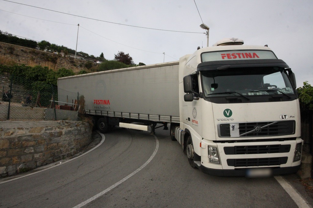 Sanremo: bilico rimane incastrato in via Val d'Olivi, intervento dei pompieri e della polizia municipale