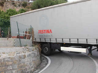 Sanremo: bilico rimane incastrato in via Val d'Olivi, intervento dei pompieri e della polizia municipale