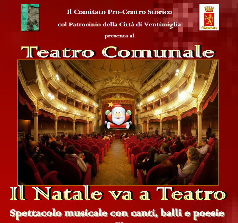 Si svolgerà giovedì alle 21, al Teatro Comunale di Ventimiglia, lo spettacolo di beneficenza, ad ingresso libero, con canti, balli e poesie dal titolo "Il Natale va a Teatro", a cura del Comitato pro Centro Storico, presieduto da Sergio Pallanca. Al singolare evento benefico parteciperanno in un clima di amicizia e solidarietà, sulle note di grandi successi della musica popolare italiana e internazionale e di alcuni brani natalizi: l' Orchestra Filarmonica Città di Ventimiglia con il maestro Franco Cocco, la scuola di danza Borgo Antico di Enza Chiappalone, Lara Tortorella, Gianluca Boetti, Enzo Lanzo e le sue coriste, All Dance di Gianni e Barbara, Paola Tiezzi, la scuola di danza Makumba di Laura Barone, Lucia Morlino, Marco Scullino, le giovani Irene Latronico e Greta De Certo, Alessia Argirò, Rossella in un numero di burlesque che evocherà con garbata ironia le atmosfere sognanti delle feste natalizie, e le ragazze ventemigliuse.