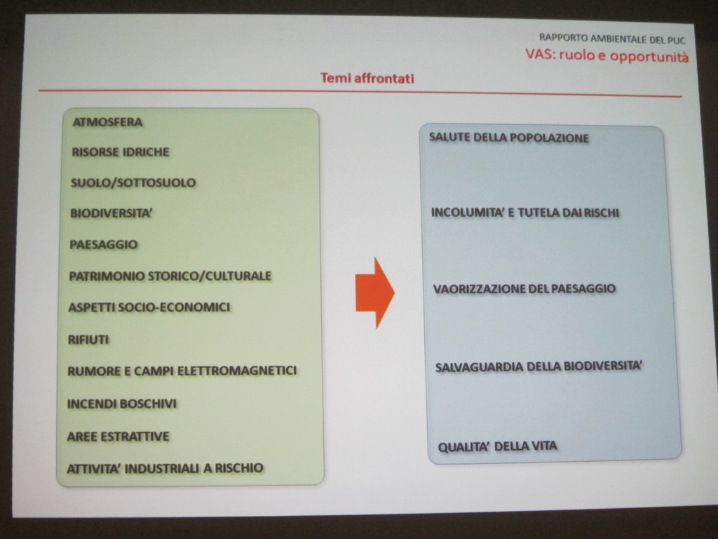 Con oltre 6 mila pagine di relazione e 100 elaborati grafici, il nuovo Puc tiene conto degli effetti dello sviluppo urbanistico su ambiente, paesaggio e salute, ponendo l'attenzione su diversi su concetti tra i quali: il consumo del suolo, la tutela della vegetazione e della biodiversità, la protezione della costa e delle risorse marine, la tutela del paesaggio rurale. Tutti aspetti contenuti ed evidenziati nella Valutazione Ambientale Strategica del Piano (Vas).
