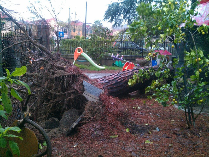 Santo Stefano al Mare: pino marittimo si abbatte all'interno di un giardino privato, nessun ferito