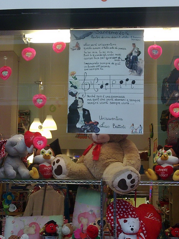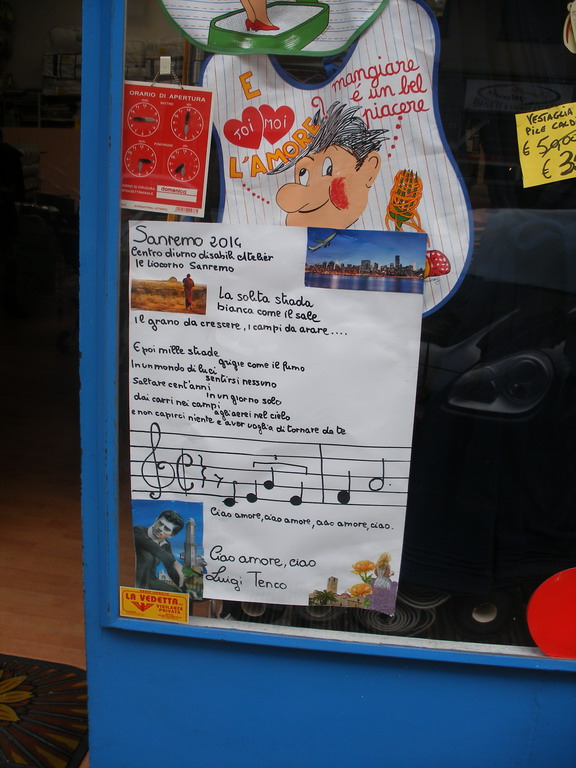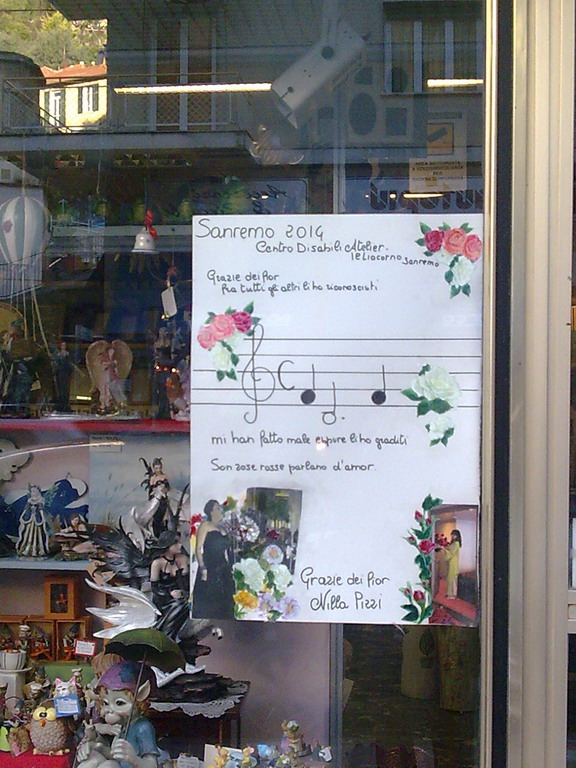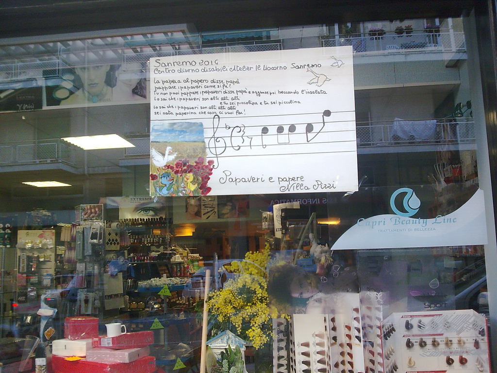 Tutto è iniziato lo scorso anno, quando ragazzi ed operatori del centro diurno disabili Atelier Il Liocorno hanno proposto ai negozianti di via Agosti, dove il centro ha sede, di adornare le loro vetrine per il Festival con dei cartelloni da loro realizzati dedicati alle canzoni di Umberto Bindi. L’iniziativa ha avuto tanto successo che quest’anno i negozianti stessi hanno voluto ripeterla, dando vita ad una collaborazione esempio di integrazione vera tra il mondo dei disabili e la società.