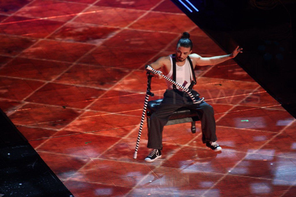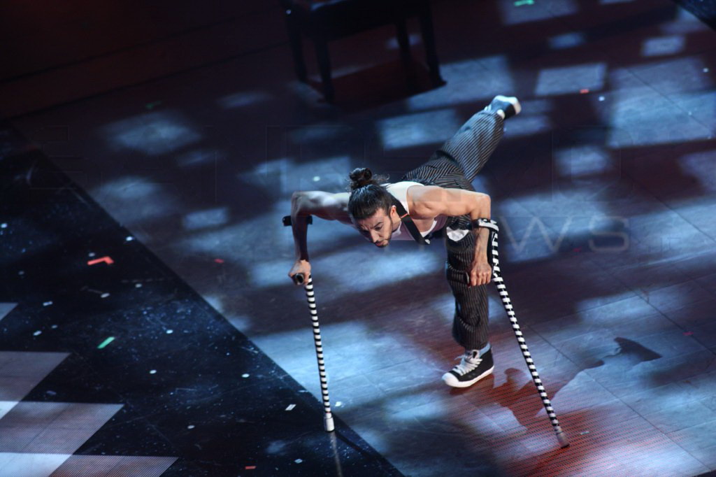 Stavolta tocca alla Littizzetto, finalmente all’opera sola sul palco dell’Ariston a non fare il verso a nessuno. Un monologo che parla di handicap e discriminazione, in modo tutto suo, appassionato si, ma l’argomento è impegnativo. Meglio di lei e delle sue parole ci fa capire il significato di tutto Dergin Tokmak, che danza con le stampelle. Affetto da poliomielite, il ballerino tedesco, è l’unico artista disabile a fare parte del Cirque du Soleil.