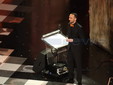 In scaletta non è previsto, è una piacevole sorpresa anche per i giornalisti in sala stampa, quella che sembra un’altra intrusione stile “cavallo pazzo” è invece un organizzatissimo flash mob con un gruppo che canta a cappella. Un po’ di modernità!