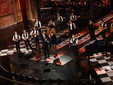 Rieccoci nell’amarcord: arriva Renzo Arbore e l’Orchestra Italiana. E’ un umorismo di altri tempi, quanti comici ed artisti di oggi vorrebbero essere capaci di cotanta grazia e stile. “Ma la notte no” mi ricorda quei bei varietà di quando ero ragazzina, mentre “Reginella”è un splendido omaggio alla canzone napoletana e a Murolo, cose e persone che tutto il mondo ci invidia e che noi ci stiamo dimenticando. Forse un po’ troppo lungo, per un attimo ho pensato di non essere più al Festival di Sanremo, anche se la canzone italiana in questo caso c’è e come.