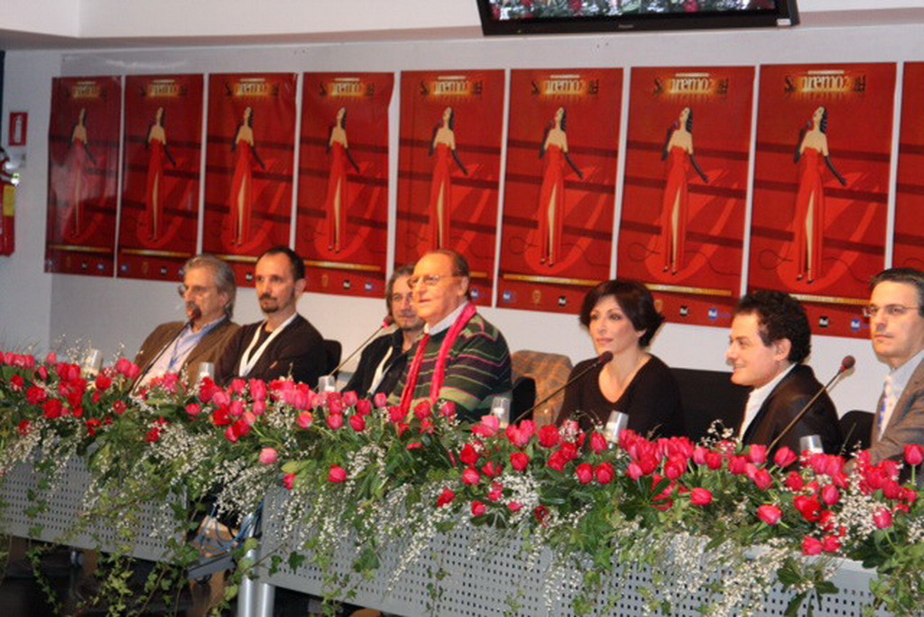 Tripudio per Renzo Arbore in sala stampa Lucio Dalla che si presenta accompagnato dalla sua tanto amata canzone napoletana. Lui è l'Orchestre Italiana che presto partiranno in tour che girerá tutto il mondo.