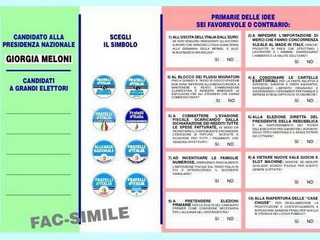 Anche in Provincia di Imperia, sabato e domenica prossimi si svolgeranno le primarie indette da Fratelli d'Italia. Con le primarie di Fratelli d’Italia, iscritti e simpatizzanti potranno votare il Presidente Nazionale del Movimento e i 'grandi elettori', cioè complessivamente 3150 delegati che avranno il compito, nel congresso nazionale previsto a Fiuggi per l’8 e 9 marzo 2014, di ratificare l’elezione del Presidente nazionale, la scelta del simbolo l'elezione dei membri dell'Assemblea Nazionale del movimento. Per scegliere i propri grandi elettori si potranno esprimere fino a cinque preferenze tra i candidati nel territorio di appartenenza e, per la Provincia di Imperia ne verranno votati 11.
