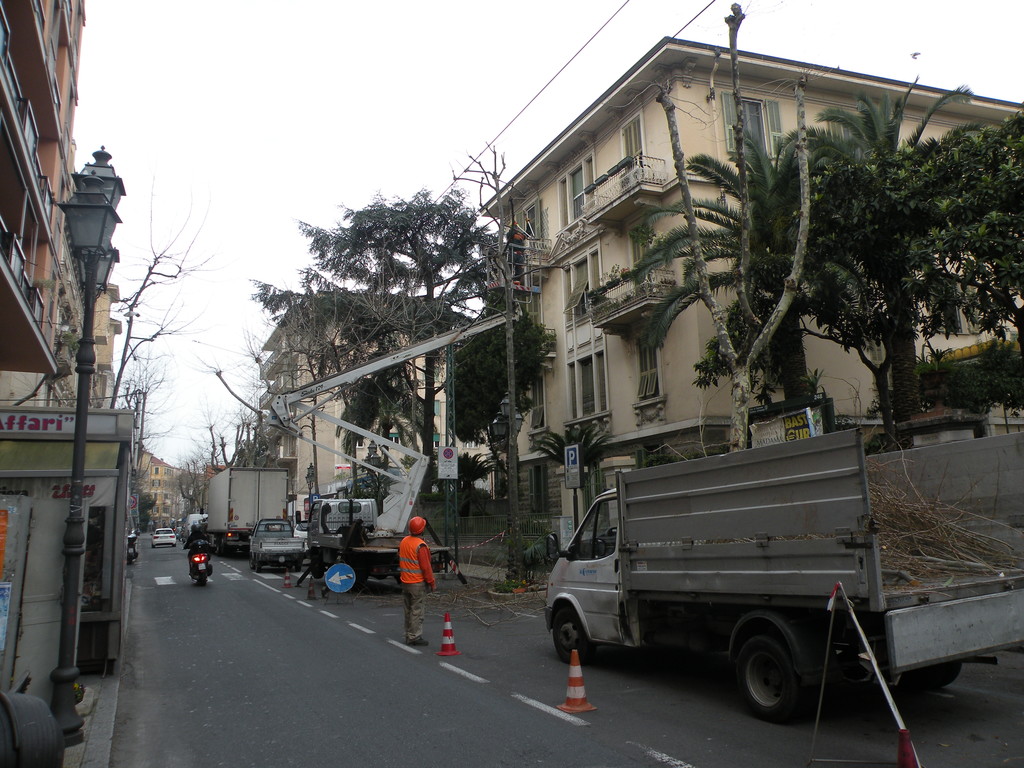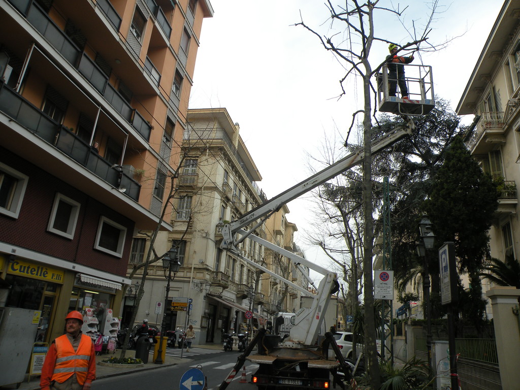 Dopo l'intervento di potatura biennale agli alberi di Coldirodi, i lavori proseguono sui platani in Corso Garibaldi.