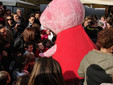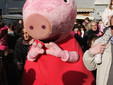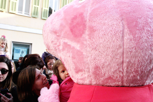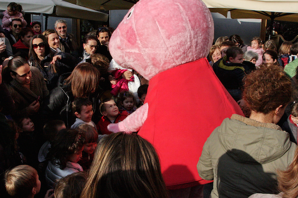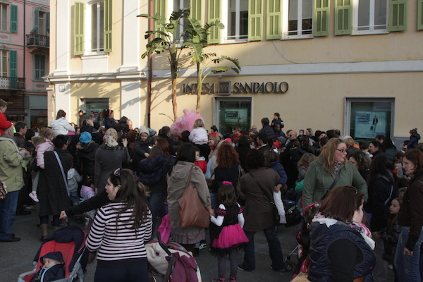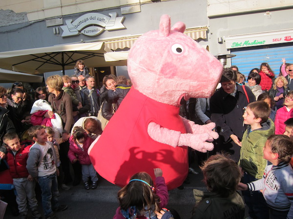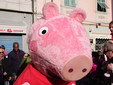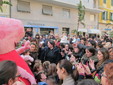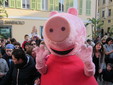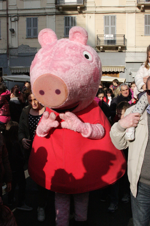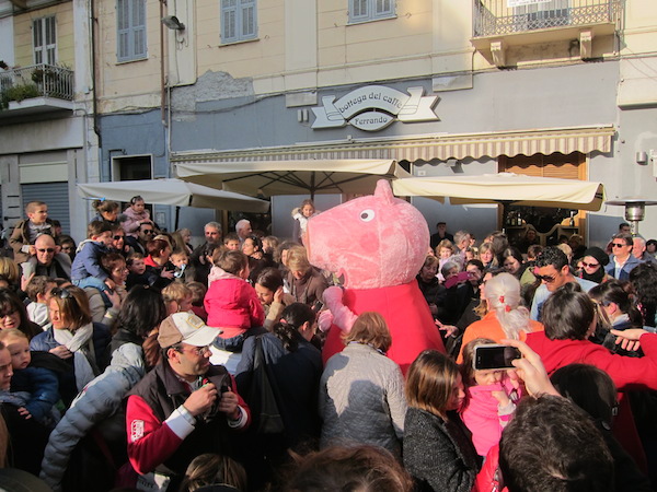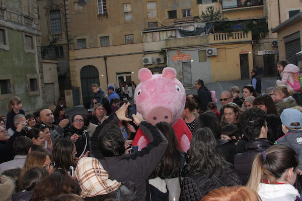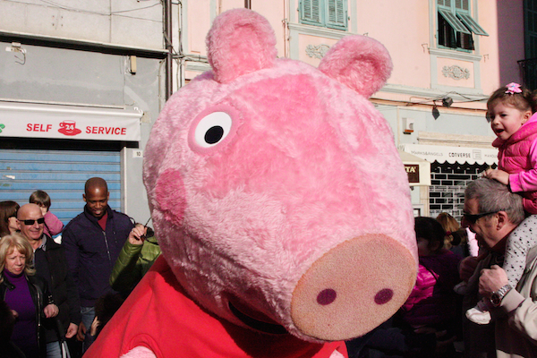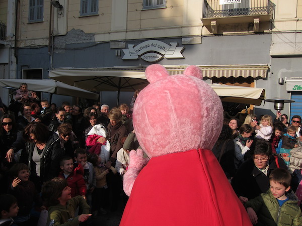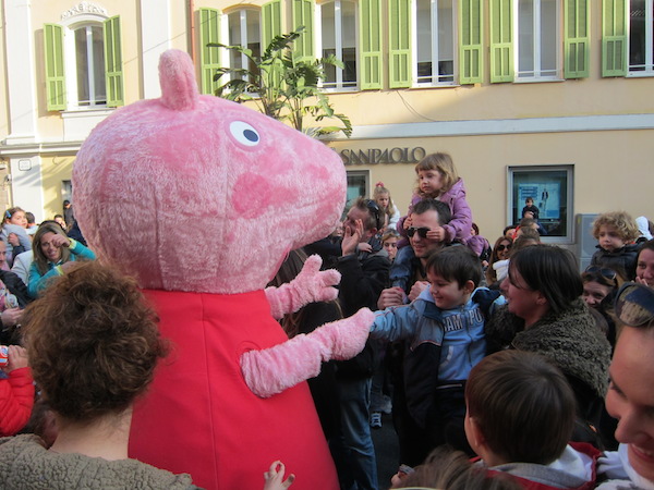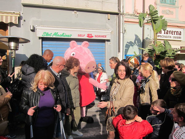 Un vero e proprio tripudio di bambini in festa ha salutato oggi pomeriggio Peppa Pig, personaggio dei cartoni animati, che oggi si è presentato in piazza Borea d'Olmo a Sanremo. Questa simpatica maialina vero e proprio idolo dei cuori dei più piccini è stata portata a Sanremo grazie all'assessore al turismo Claudia Lolli ed all'associazione Narima di Simona e Carlotta De Melas.
