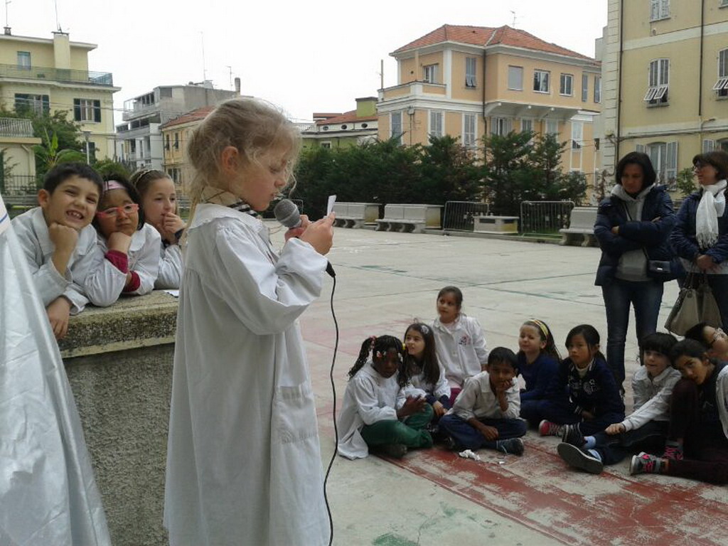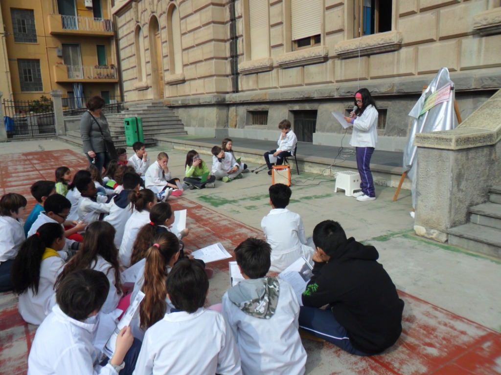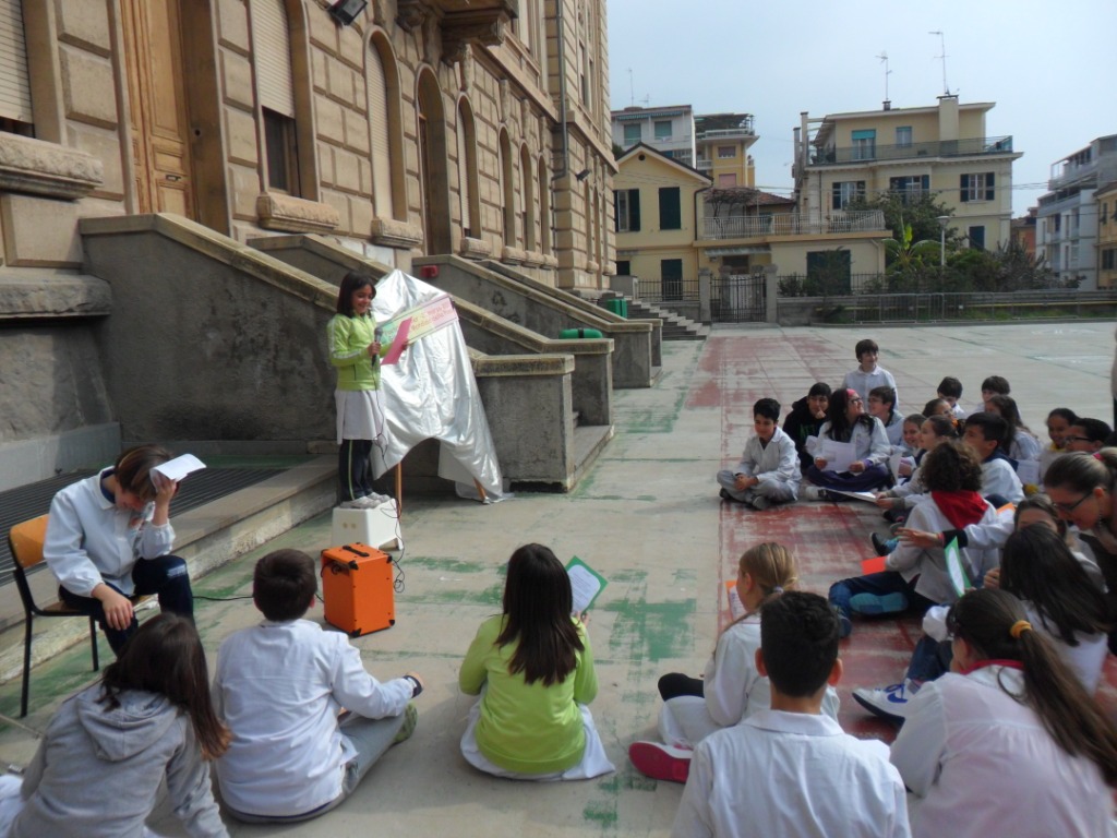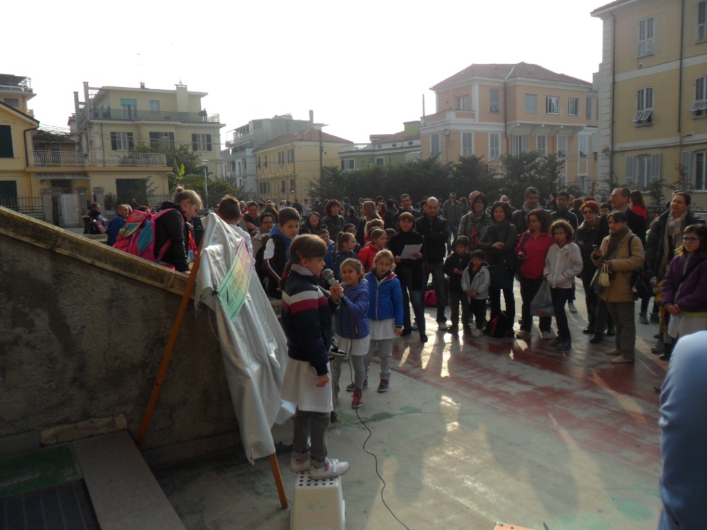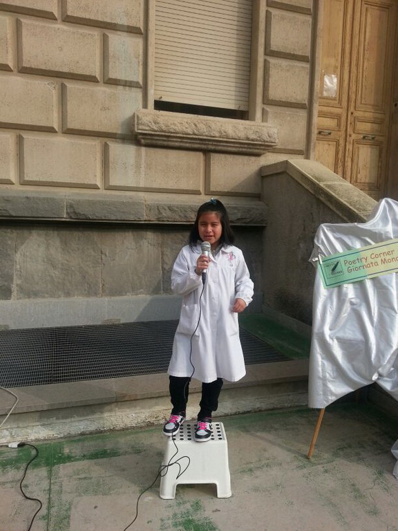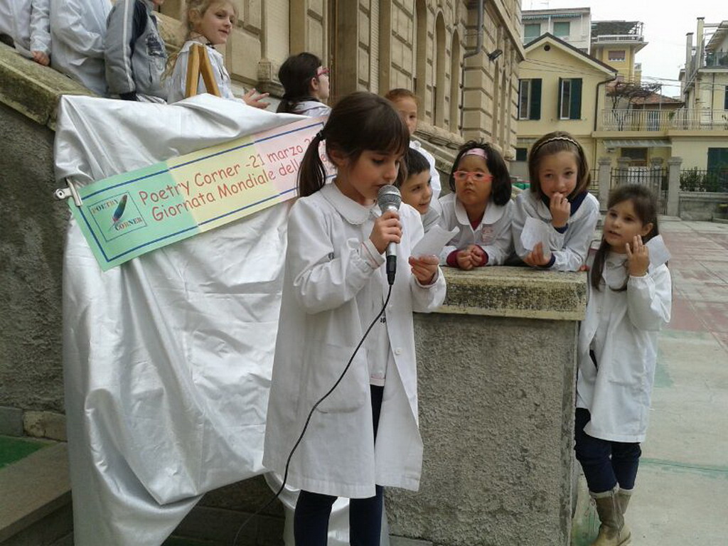 "Anche noi, alunni e insegnanti della scuola primaria A. Volta dell'Istituto Comprensivo 'Italo Calvino', abbiamo voluto festeggiare questa giornata e oggi, venerdì 21 marzo ci siamo cimentati in 'Una poesia lunga un giorno', reading poetico che ha occupato tutta la giornata: le 14 classi della scuola Volta e la classe 1a A della scuola secondaria di primo grado Calvino si sono infatti susseguite nella lettura di poesie nel cortile della scuola. Nell'atrio della scuola, poi, è stato realizzato 'l'Albero delle Poesie', sui cui rami tutti, bambini e adulti, hanno appeso la 'loro' poesia. L'iniziativa nasce nell'ambito del Progetto Biblioteca dell'Istituto.