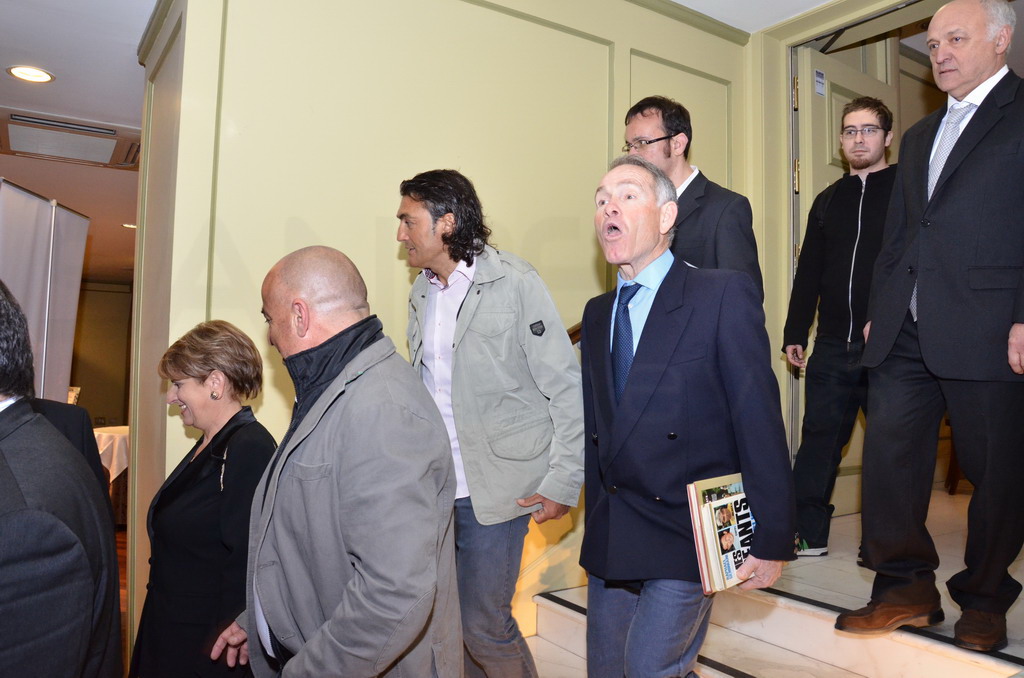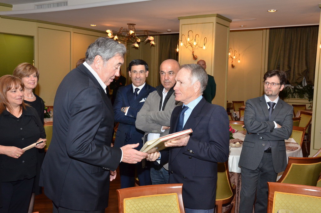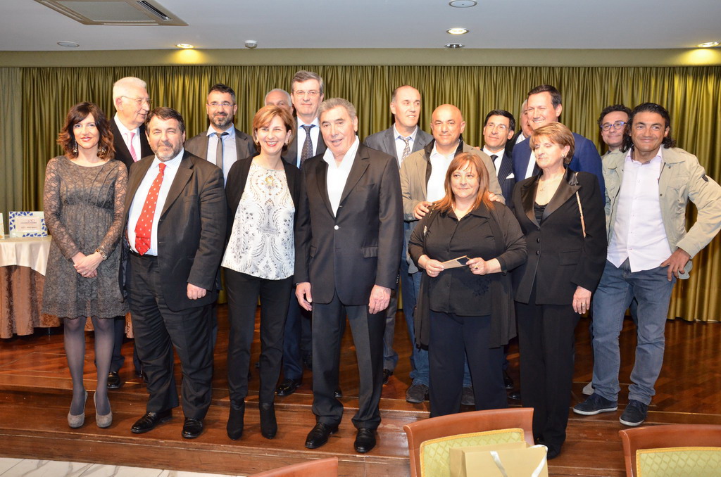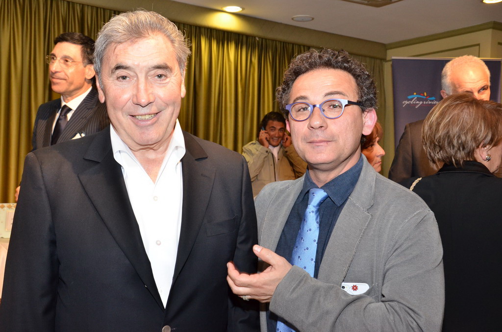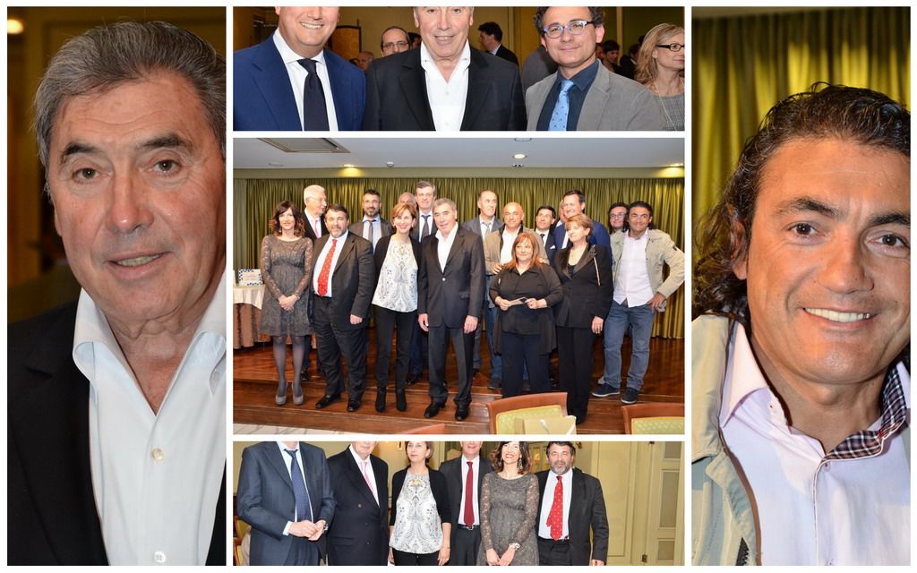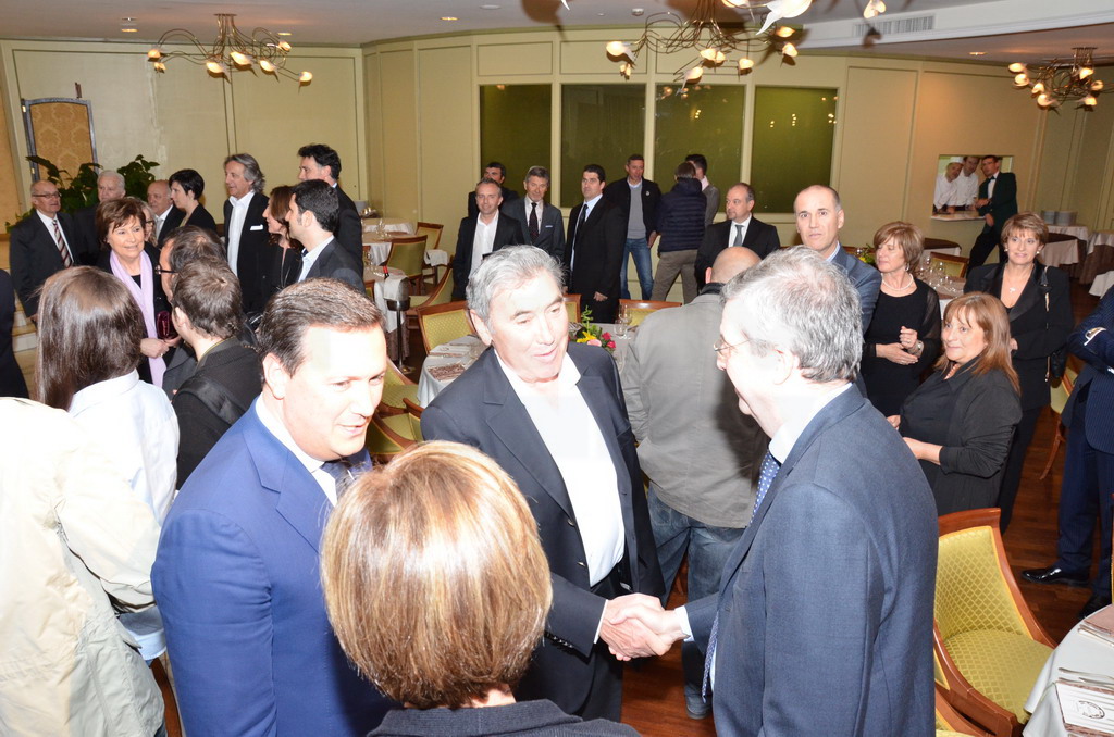 Serata sobria ed elegante, quella di ieri al ristorante 'Biribissi' del Casinò di Sanremo, con l'ospite d'onore il 'cannibale' Eddie Merkcx che, questa mattina inaugurerà la nuova galleria di collegamento tra Sanremo ed Ospedaletti sulla pista ciclabile. Alla serata, cui ha fatto da padrone di casa il presidente di 'Area 24', Giuseppe Argirò, era presente il presidente della Regione Liguria Claudio Burlando, insieme agli Assessori Matteo Rossi, Enrico Vesco e Raffaella Paita. Per il Comune era presente il vice Sindaco Claudia Lolli ed erano insieme a lei tutti i sindaci dei comuni che insistono sulla pista ciclabile, da San Lorenzo al Mare ad Ospedaletti.