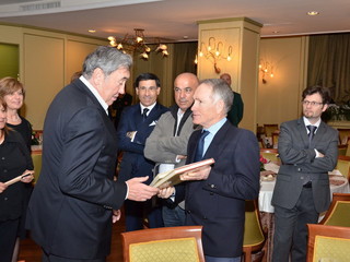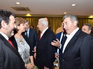 Serata sobria ed elegante, quella di ieri al ristorante 'Biribissi' del Casinò di Sanremo, con l'ospite d'onore il 'cannibale' Eddie Merkcx che, questa mattina inaugurerà la nuova galleria di collegamento tra Sanremo ed Ospedaletti sulla pista ciclabile. Alla serata, cui ha fatto da padrone di casa il presidente di 'Area 24', Giuseppe Argirò, era presente il presidente della Regione Liguria Claudio Burlando, insieme agli Assessori Matteo Rossi, Enrico Vesco e Raffaella Paita. Per il Comune era presente il vice Sindaco Claudia Lolli ed erano insieme a lei tutti i sindaci dei comuni che insistono sulla pista ciclabile, da San Lorenzo al Mare ad Ospedaletti.