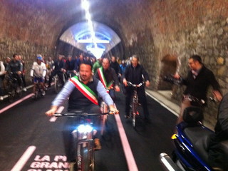 Il nuovo futuro economico del territorio ligure passa dal completamento della pista ciclabile. Un percorso a tappe giunto oggi, alla vigilia della ‘Milano-Sanremo’, ad un momento storico. Taglio del nastro e cerimonia inaugurale della galleria tra Capo Nero e l’ex scalo merci di Ospedaletti per il completamento dei 24 chilometri di tracciato. “Un sogno diventato realtà”, hanno chiosato in coro il governatore ligure Burlando e il Presidente di Area 24, Giuseppe Argirò.