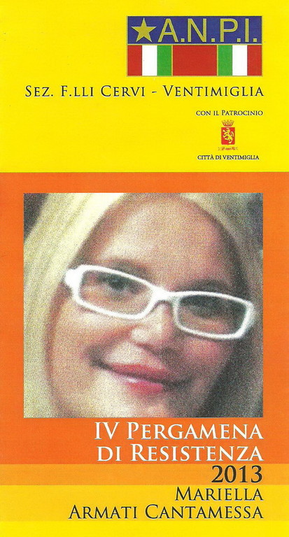 Oggi alle ore 10.30 in sala Consigliare di Ventimiglia, l'Associazione Genitori A.ge è stata invitata dall'A.N.P.I a partecipare alla IV consegna della Pergamena di Resistenza a favore dei Signori Cantamessa, genitori della giovane Eleonora Cantamessa, dottoressa ginecologa morta per aver soccorso un giovane indiano accoltellato.