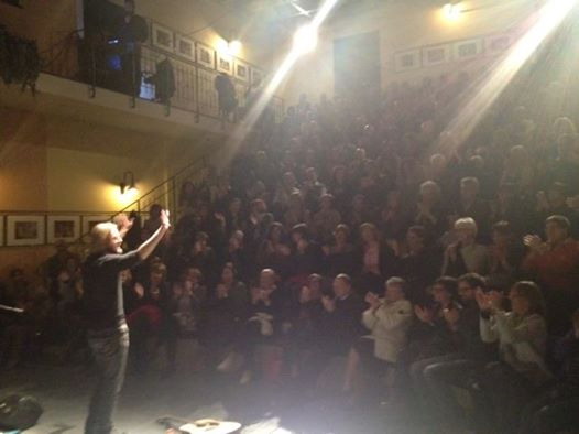 La sera, in un teatro affollatissimo al limite della capienza, Andrea Scanzi ci ha offerto la sua lettura di De André a partire dagli esordi, e preceduto da alcuni frammenti musicali registrati. Dal primo dilemma di Fabrizio - sarò un poeta o un cretino? Meglio cantautore... - ripercorriamo i suoi primi album, senza dimenticare le fonti a cui si è abbeverato il giovane musicista, ancora incerto sulla strada da intraprendere: Brassens, Villon ma anche quell'altro gigante, Luigi Tenco, che Fabrizio ammira e un po' invidia perché sa trattare molto meglio di lui tutti i temi che interessano a De André. La prima canzone live è una personalissima versione di Geordie che chiarisce subito cos'è De André secondo Giulio Casale; nulla di più lontano da una cover, ma piuttosto l'interiorizzazione di quella musica, restituita dalla sensibilità di Casale, un grandissimo protagonista dell'artigianato musicale (la definizione è sua) degli ultimi trent'anni (Club Tenco, se ci sei batti un colpo!).