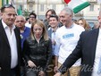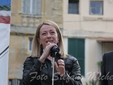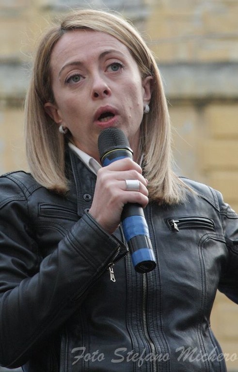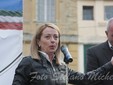 L’ultima parte del Comizio è stata occupata dall’intervento di Giorgia Meloni che ha usato parole dure contro l’Europa: “Sapete come chiamano in Europa, Irlanda, Spagna Portogallo ed Italia? Ci chiamano maiali. L’Italia è la nazione che trasmette più fondi in Europa. La verità è che noi siamo galline dalle uova d'oro e abbiamo bisogno di governi che non vengano mandati dall'Europa per commissionare l'Italia. Ci hanno trattato come il pollo che viene messo in mezzo al tavolo del poker. Matteo Renzi non è molto diverso. Si è fatto autorizzare le riforme dalla Germania. Siamo una nazione sovrana, siamo un popolo libero e siamo liberi perché qualcuno è morto per darci questo diritto. Il 17 marzo è andato in Germania e ha fatto un inchino alla Schettino di fronte alla Merkel. Dicevano che con Monti avremmo recuperato credibilità, andatelo a dire ai Marò. Quello che è successo a loro dal mio punto di vista basterebbe per scatenare una guerra. Nessuna nazione degna di questo nome avrebbe permesso di lasciare due militari in una nazione straniera in barba a qualsiasi norma internazionale”.
