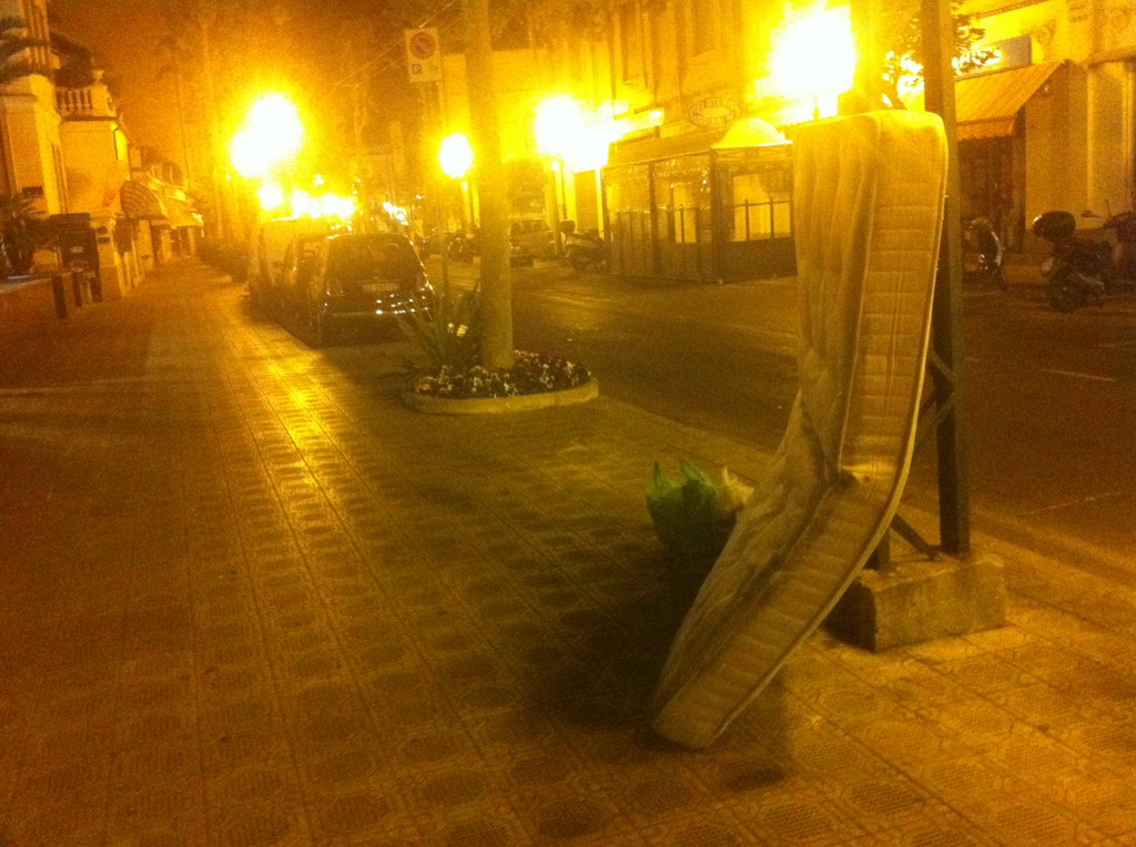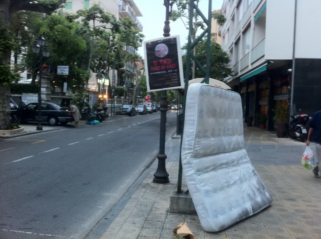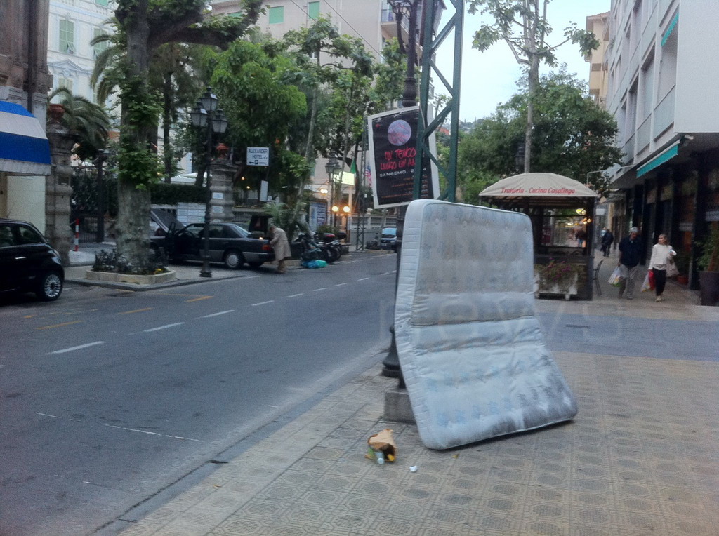 Sanremo: vergogna in corso Garibaldi, lasciato sul marciapiede un materasso matrimoniale