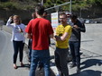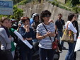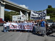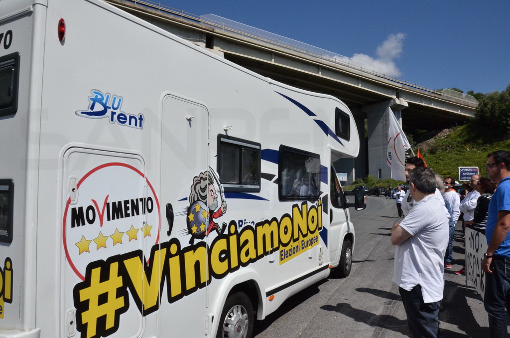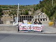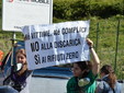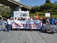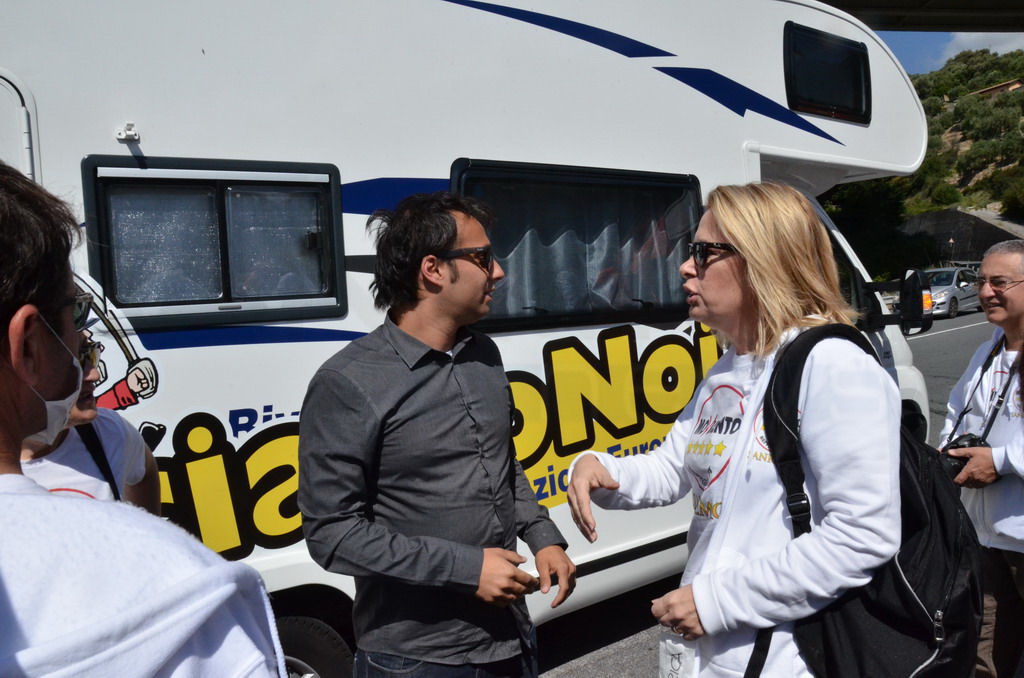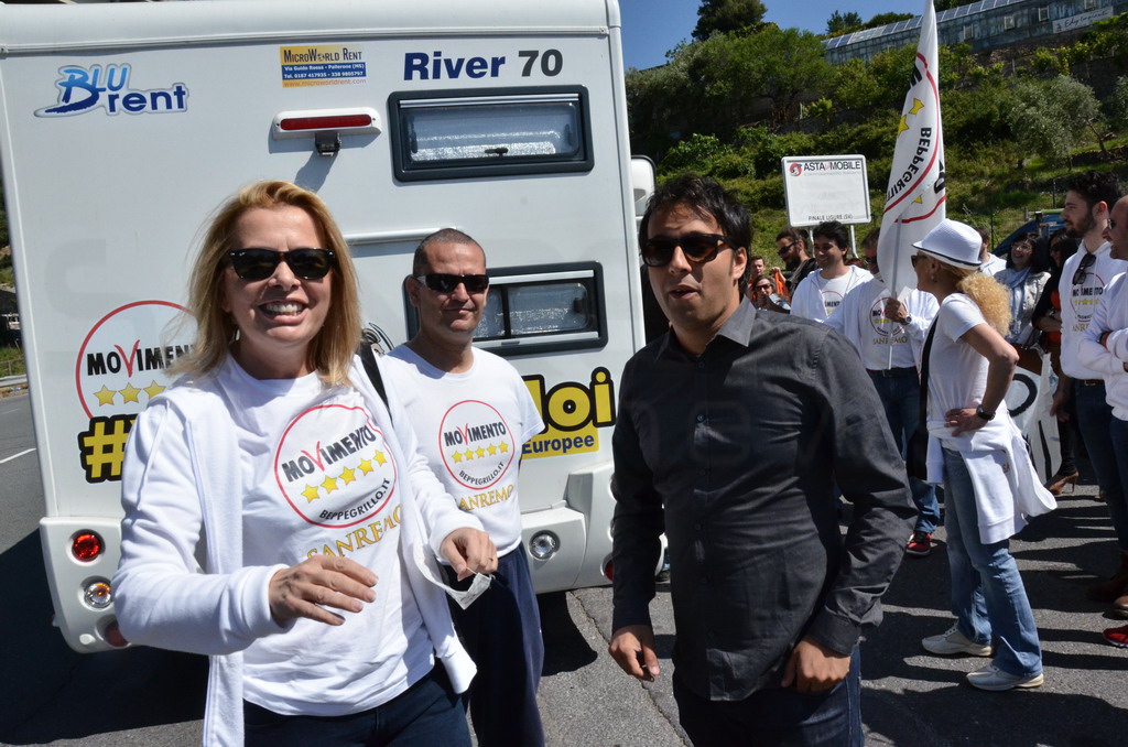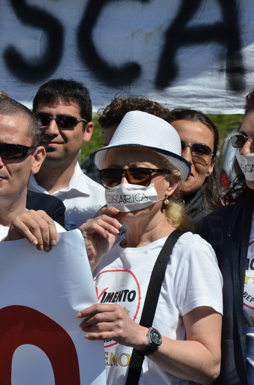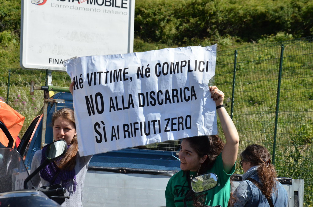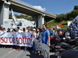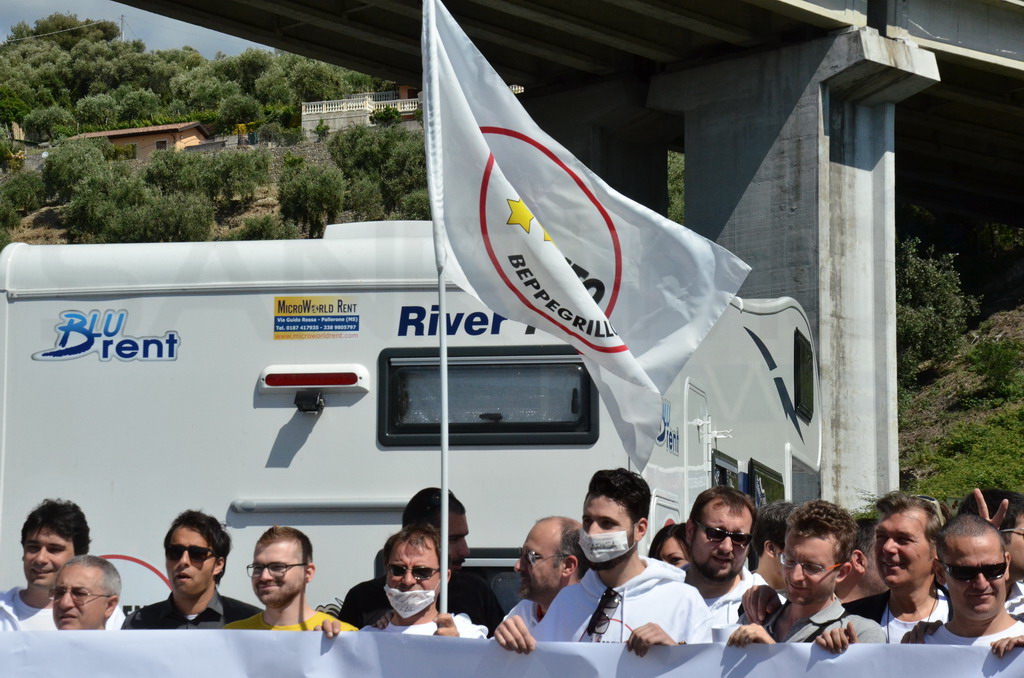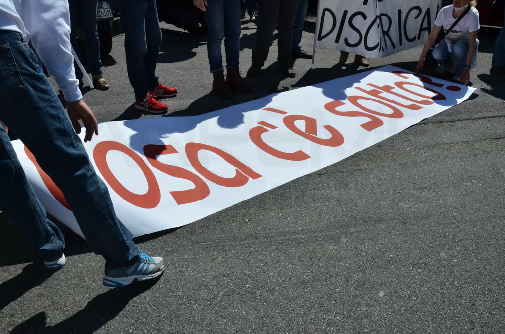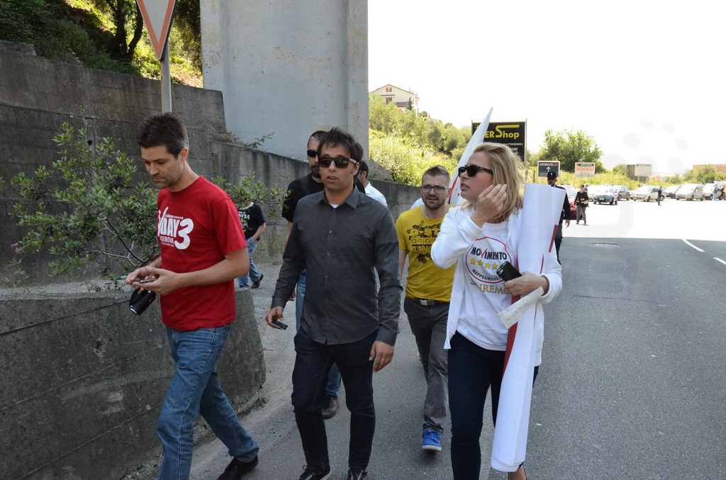 Manifestazione pacifica nei pressi dell'ingresso della discarica di Collette Ozotto a Taggia, questa mattina per il Movimento 5 Stelle di Sanremo (presenti anche alcuni esponenti di 'Sanremo Attiva' e dei comitati 'No discarica' della zona tra Taggia e Sanremo, ndr). Capitanati dal candidato a Sindaco Paola Arrigoni e da tre parlamentari savonesi (Matteo Mantero, Sergio Battelli e Simone Valente) circa 50 'grillini', insieme ad una decina di esponenti delle altre associazioni, hanno esposto i loro vessilli e cartelli tra cui il 'Cosa c'è sotto', poi proposto anche al di fuori dell'ingresso della discarica, sotto il diretto controllo degli agenti del Commissariato, intervenuti sul posto.