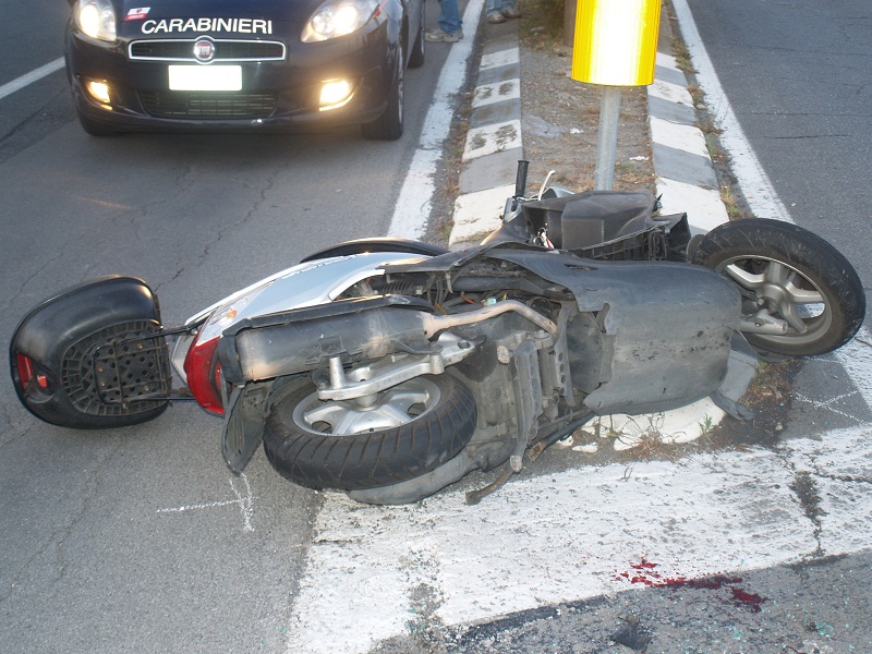 Brutto incidente in serata nei pressi del campo di atletica del Prino. Un ragazzo a bordo di uno scooter si è scontrato contro una macchina andando a finire in un'aiuola spartitraffico.