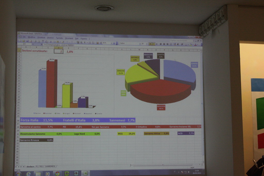 Continuano ad arrivare i dati 'ufficiosi' ai point elettorali allestiti dai candidati a Sindaco. A quello di Alberto Biancheri i tecnici sono a 24 sezioni su 56, con questi risultati: